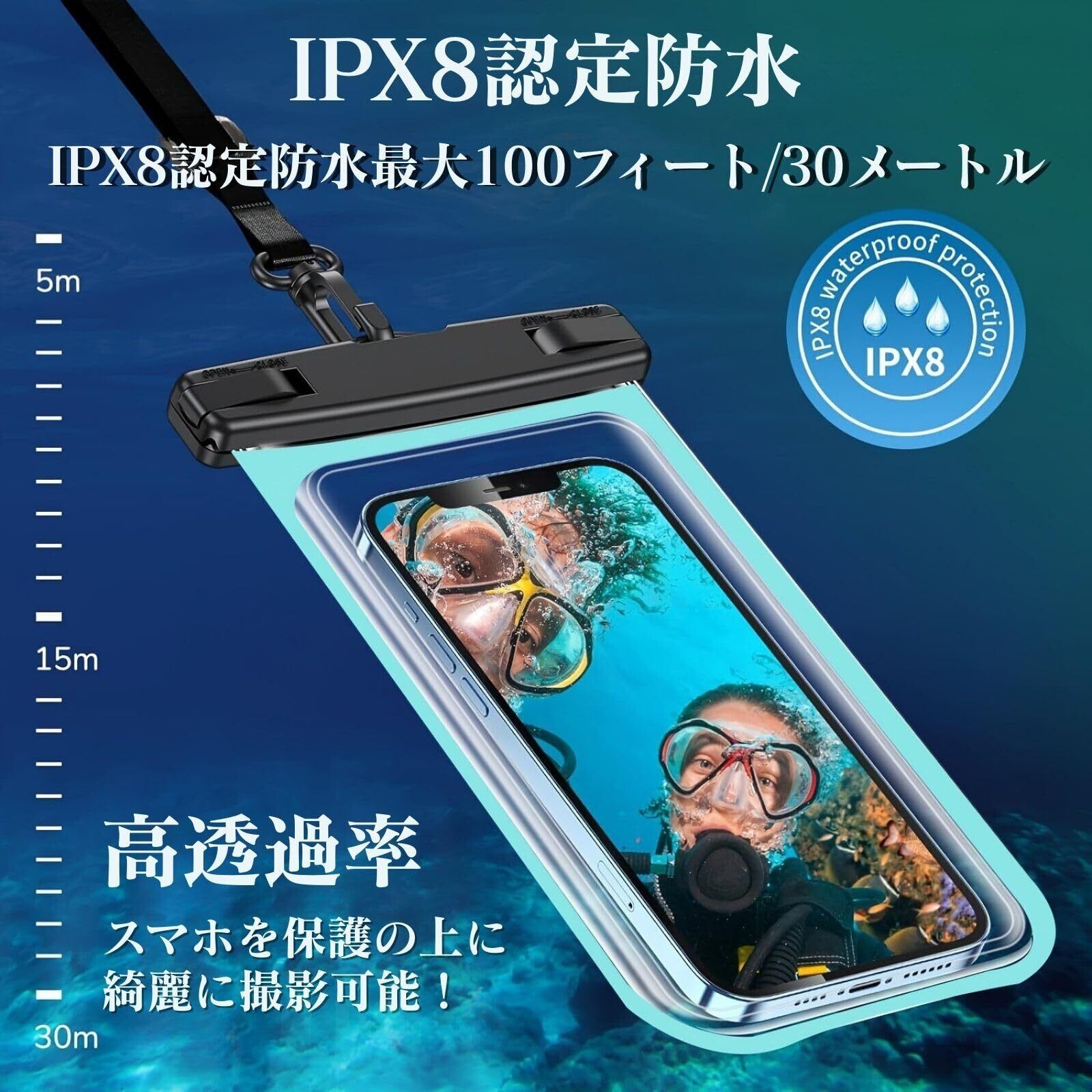 スマホ 防水 ケース 海 プール お風呂 水中撮影 携帯防水ケース ぼうすい アイフォン スマフォ 顔認証 首かけ 海水浴 水泳 潜水 温泉 (半透明)