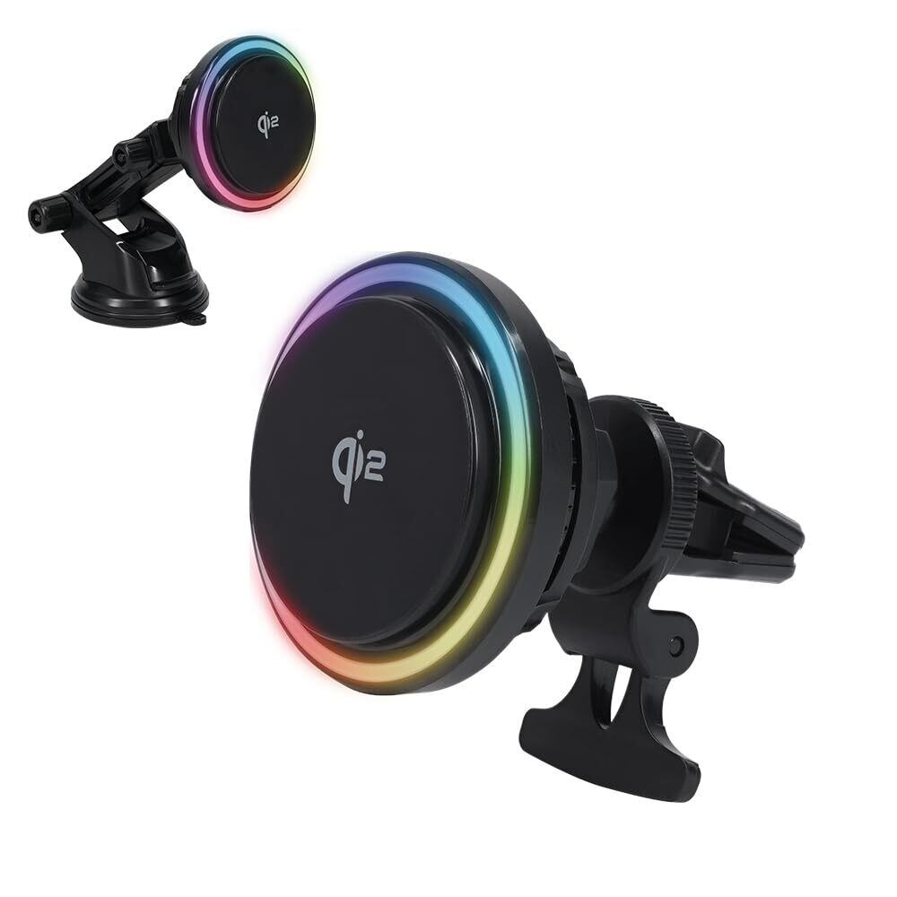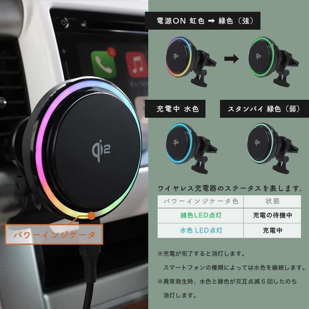 マグネット式 ワイヤレス充電器 車載 Qi2 MagSafe対応 15W 冷却ファン&冷却プレート付 スマホホルダー iPhone16/iPhone15/iPhone14 シリコンケーブル付属 ブラック MOT-QI15WCH02-ECBK
