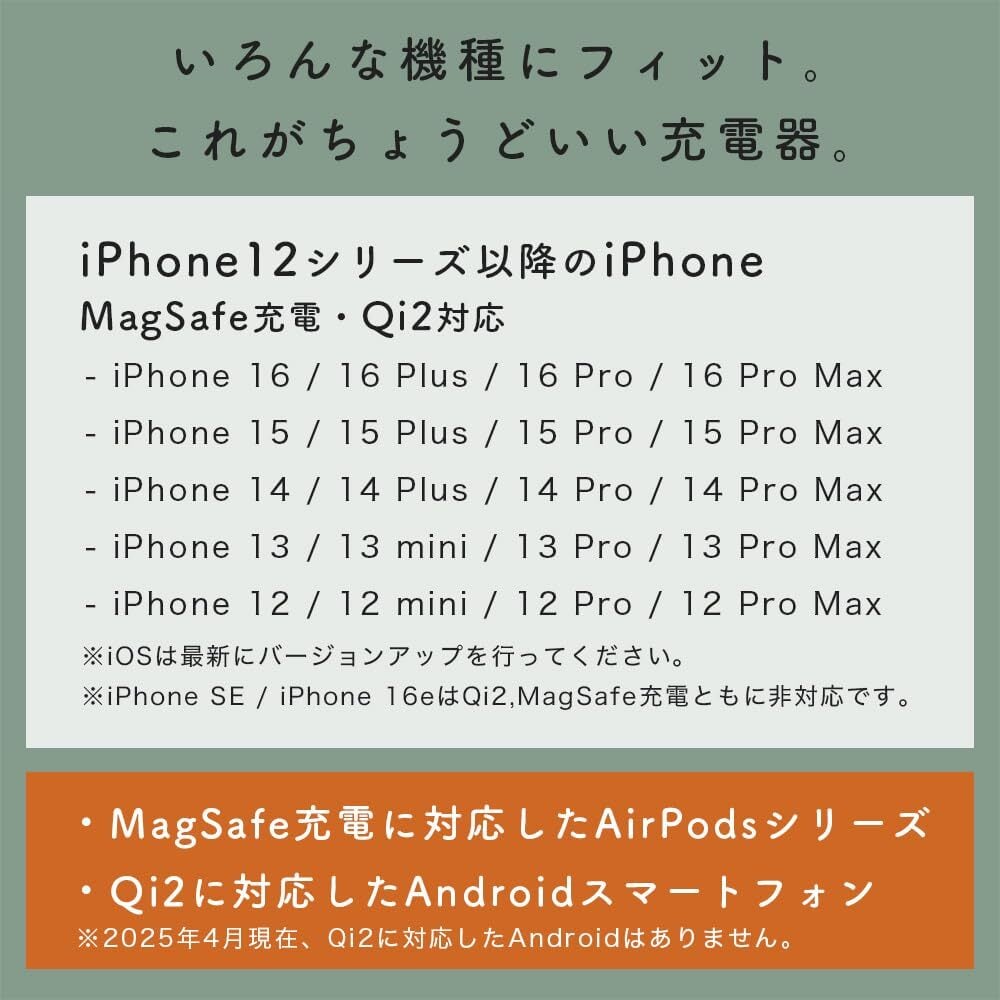 車移動の時間を使って、最大15Wで急速充電:Qi2正規認証品で、最大15Wのワイヤレス充電に対応。これまでのワイヤレス充電器よりもさらに急速充電が可能になりました。 ※本製品は放熱ファンと冷却プレート(ペルチェ素子)を搭載しているため、必ず『PD30W以上』の出力に対応した充電器のご使用をお願いします。
