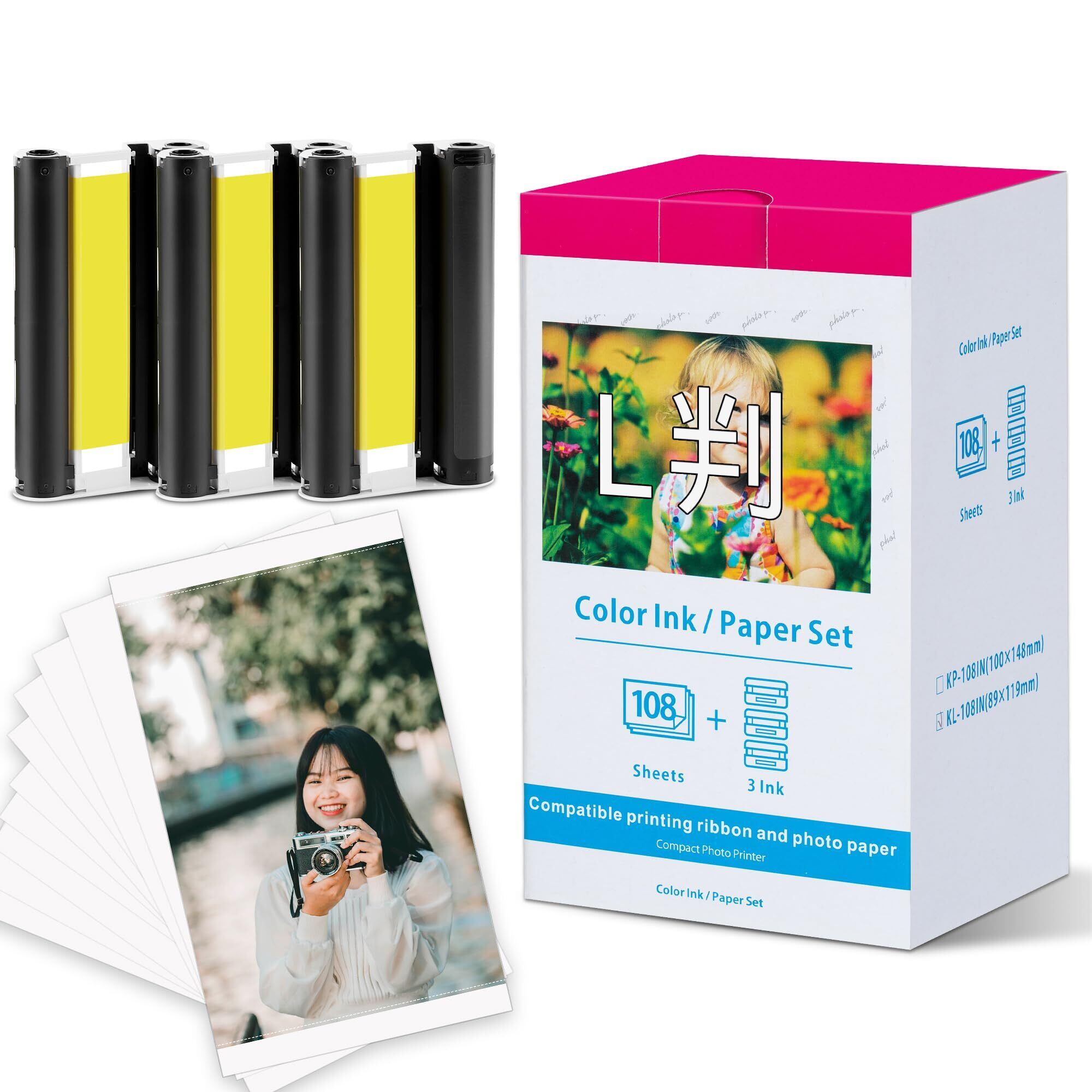 108枚 L判 写真用紙 キャノン セルフィー用 KL-36IP 3PACK カラーインク/ペーパ KL-108IN 光沢紙 と互換性のある canon SELPHY CP1500 CP1300 CP1200 フォトプリンター