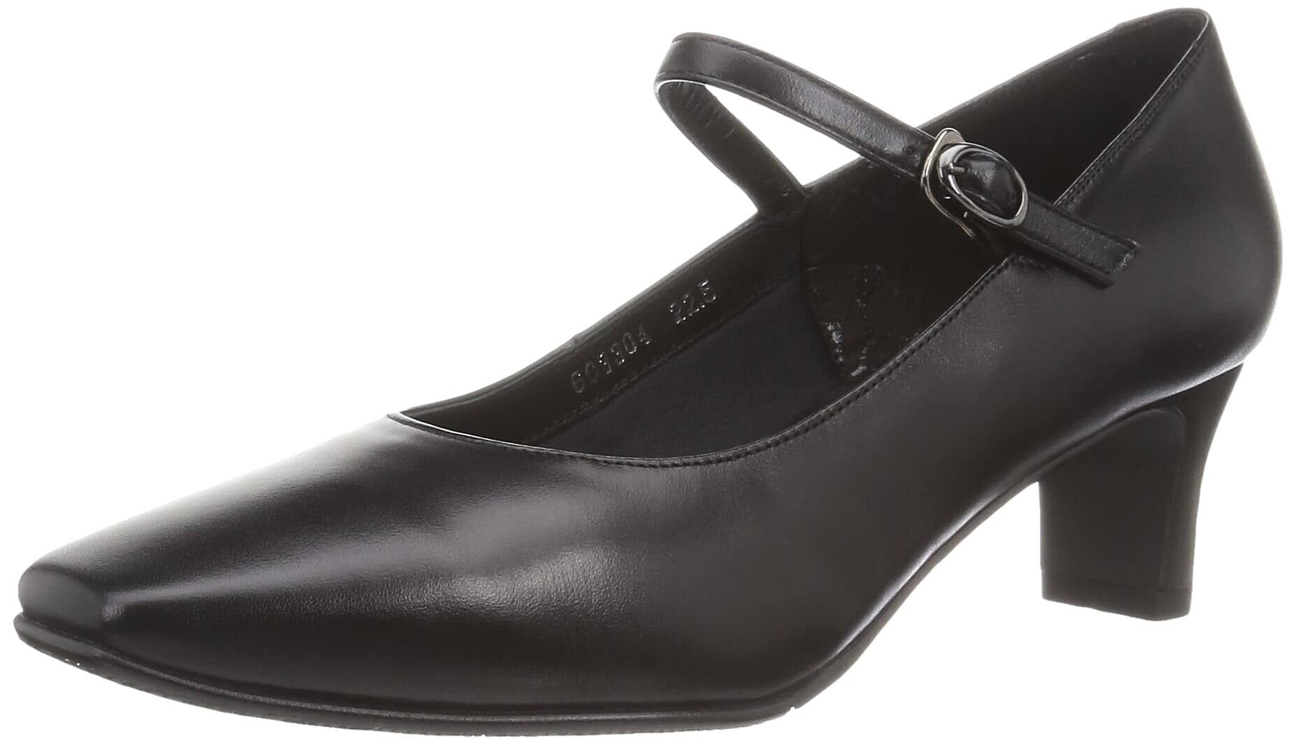 ヒール5cm・スクエアトゥのストラップパンプス。
