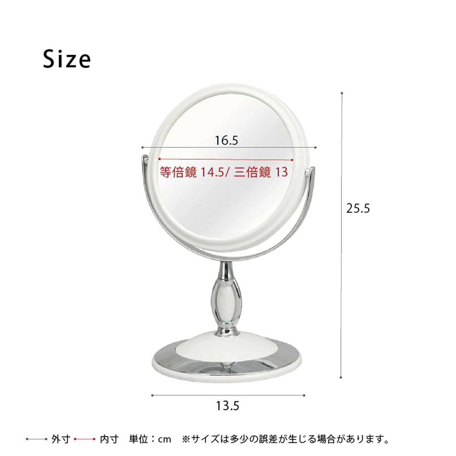永井興産 卓上ミラー 化粧鏡 幅16.5cm 角度調節可 ホワイト 等倍鏡/3倍拡大鏡 丸型 くるり NK-243