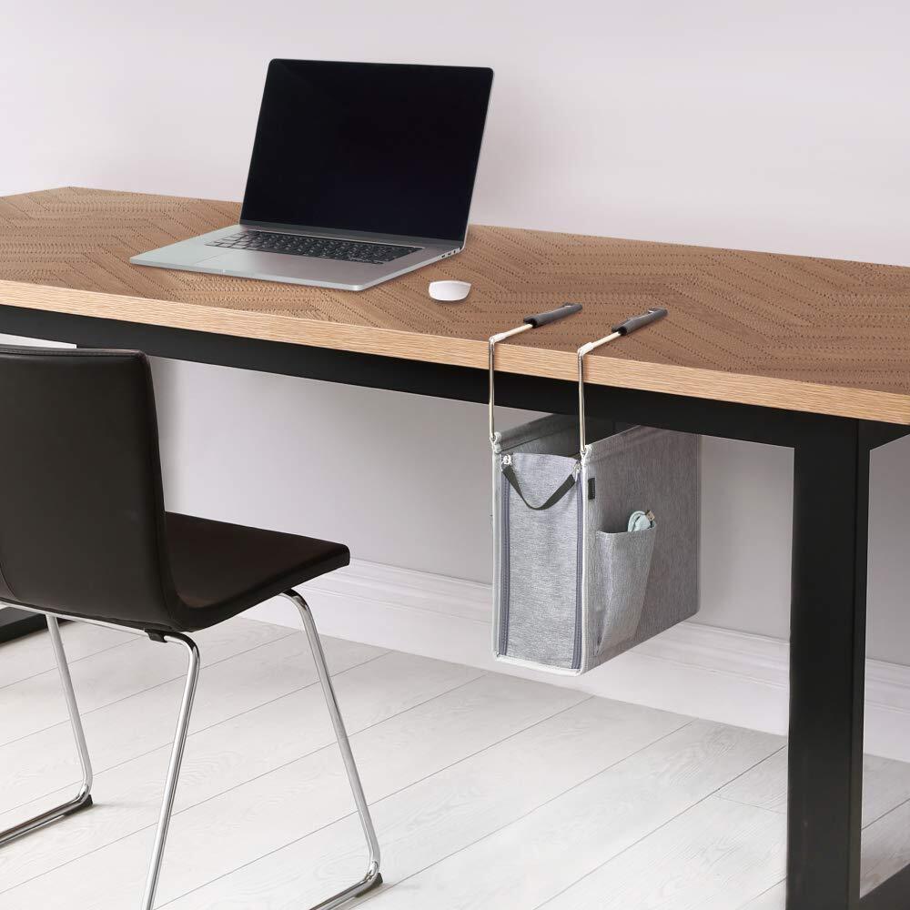ダイニングテーブルやデスクに取り付けるだけ、どこでも収納スペースが確保できる。机の上や足元はスッキリ!