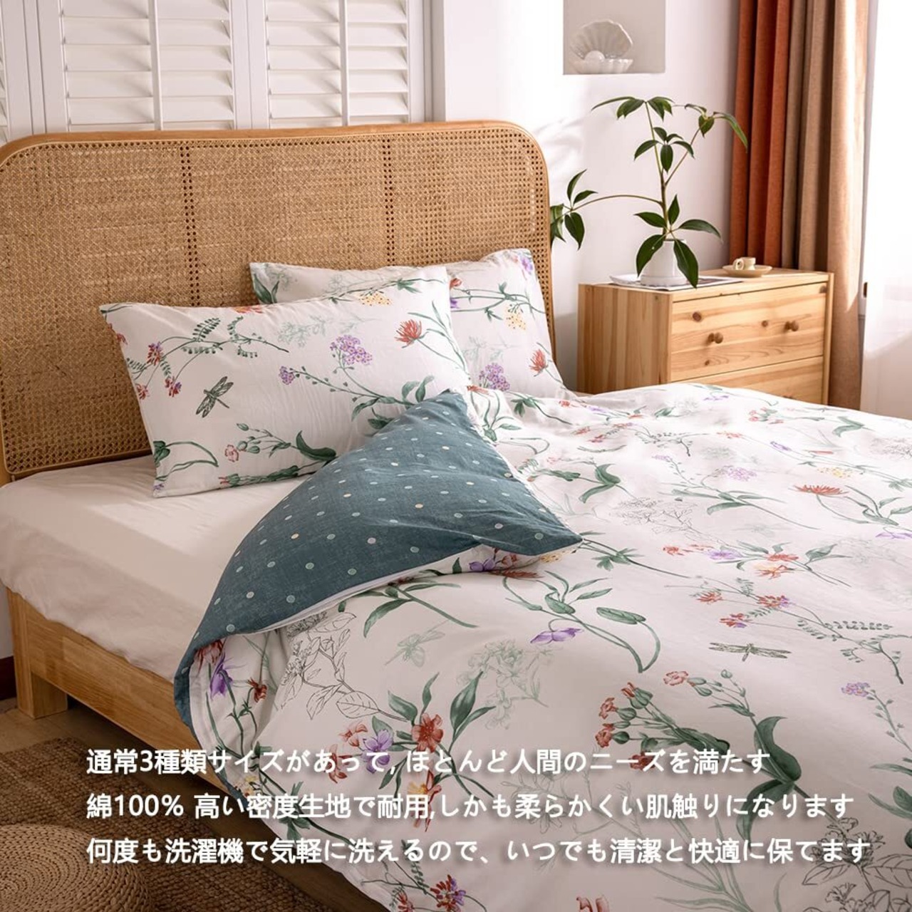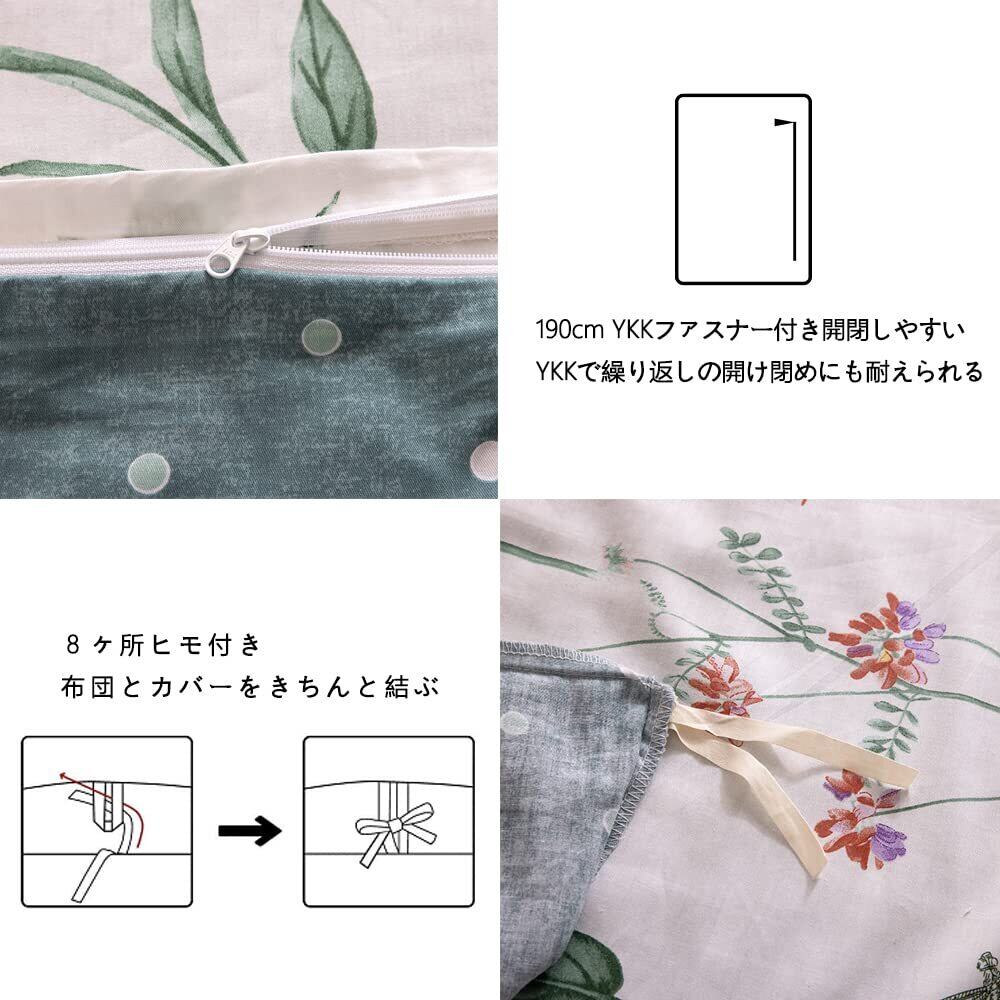 【材质】 綿100% 高い密度生地で耐用,しかも柔らかくい肌触りになります。 カバーの両サイドにファスナー付き。端から端まで開いて布団の出し入れも簡単・便利。