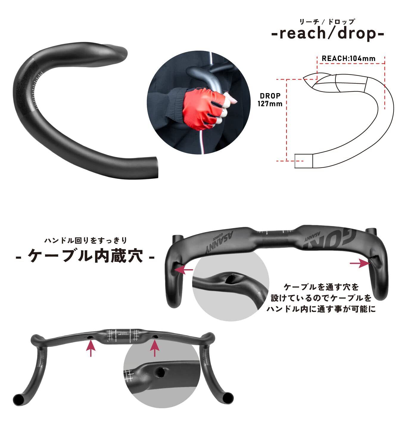 GORIX(ゴリックス) 自転車 カーボン エアロハンドル ドロップハンドル (ASANNY) 炭素繊維 ロードバイク 31.8mm/400mm 軽量 自転車 ハンドルバー 艶消しマット ハンドル交換