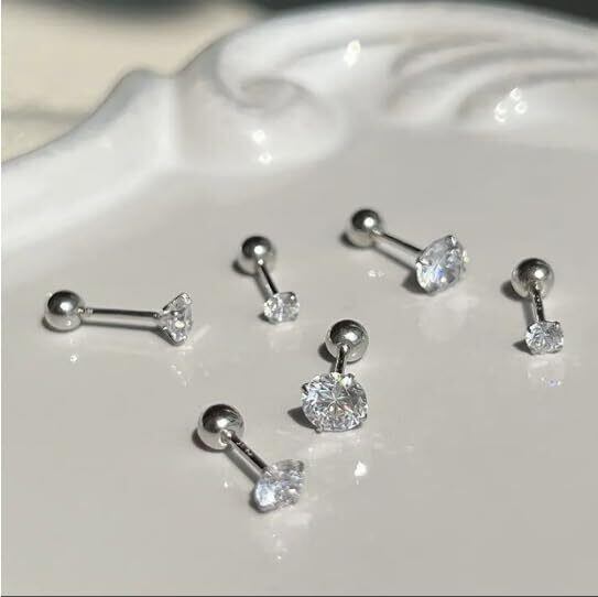 AllenCOCO 1ペア サージカルステンレスシリーズ ジルコニア ボディピアス CZ ダイヤモンド バーベル ボディーピアス 2個セット 16G/20G ジェム 3-7mm