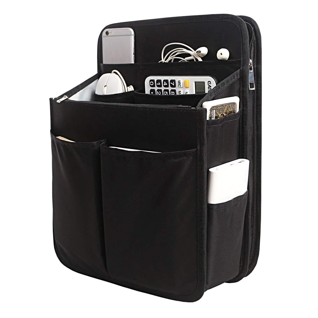 【特に事務用品対応】全てのビジネス用品をちゃんと収めるためポケットの寸法を決められます。クリアファイル、A4書類、13.3インチPC、マウス、ペン、電卓や厚い充電器、A5サイズのレシート、または長さ別々になるケーブルなど、それぞれ定席に入れられます。