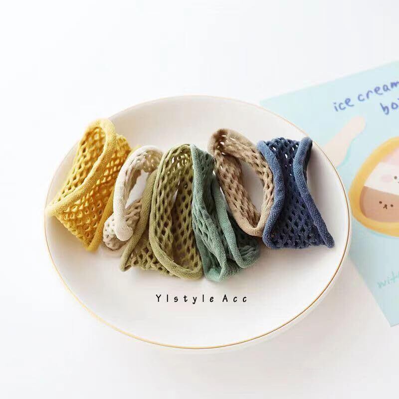 12枚ヘアゴム 伸びるコットンストレッチバンド魚網のストレッチバンド厚い中空綿のストレッチポニーテールのネクタイ網の紗スポーツのストレッチバンド女性と女の子に適用します(5.4cm)