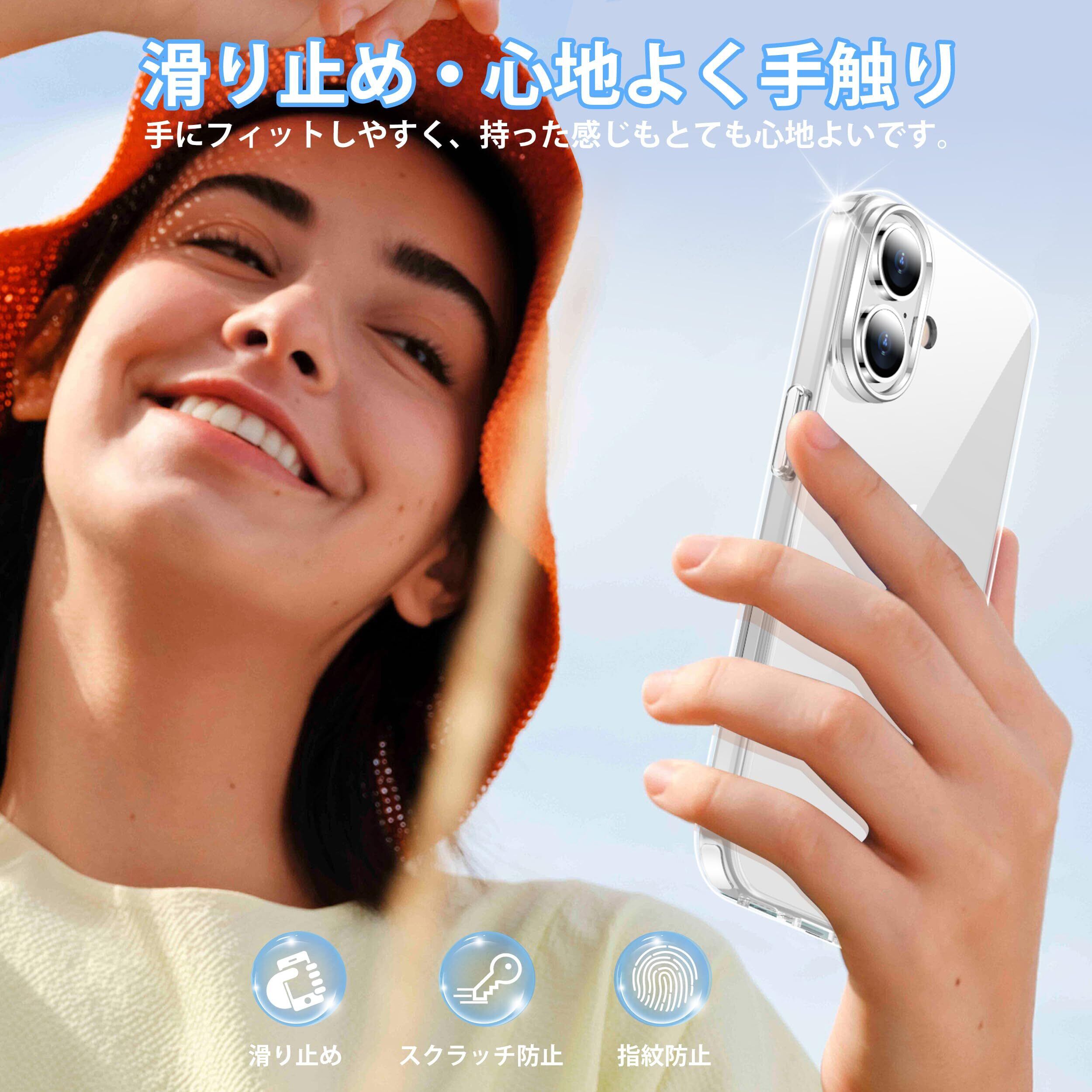 iPhone 16 ケース クリア 耐衝撃 黄ばみ防止 アイフォン16ケース 米軍MIL規格 ワイヤレス充電対応 SGS認証 指紋防止 滑り止め 薄型 耐摩耗性 あいふぉん16 あいふぉん16 カバー スマホケース 6.1インチ 透明 JUSTCOOL