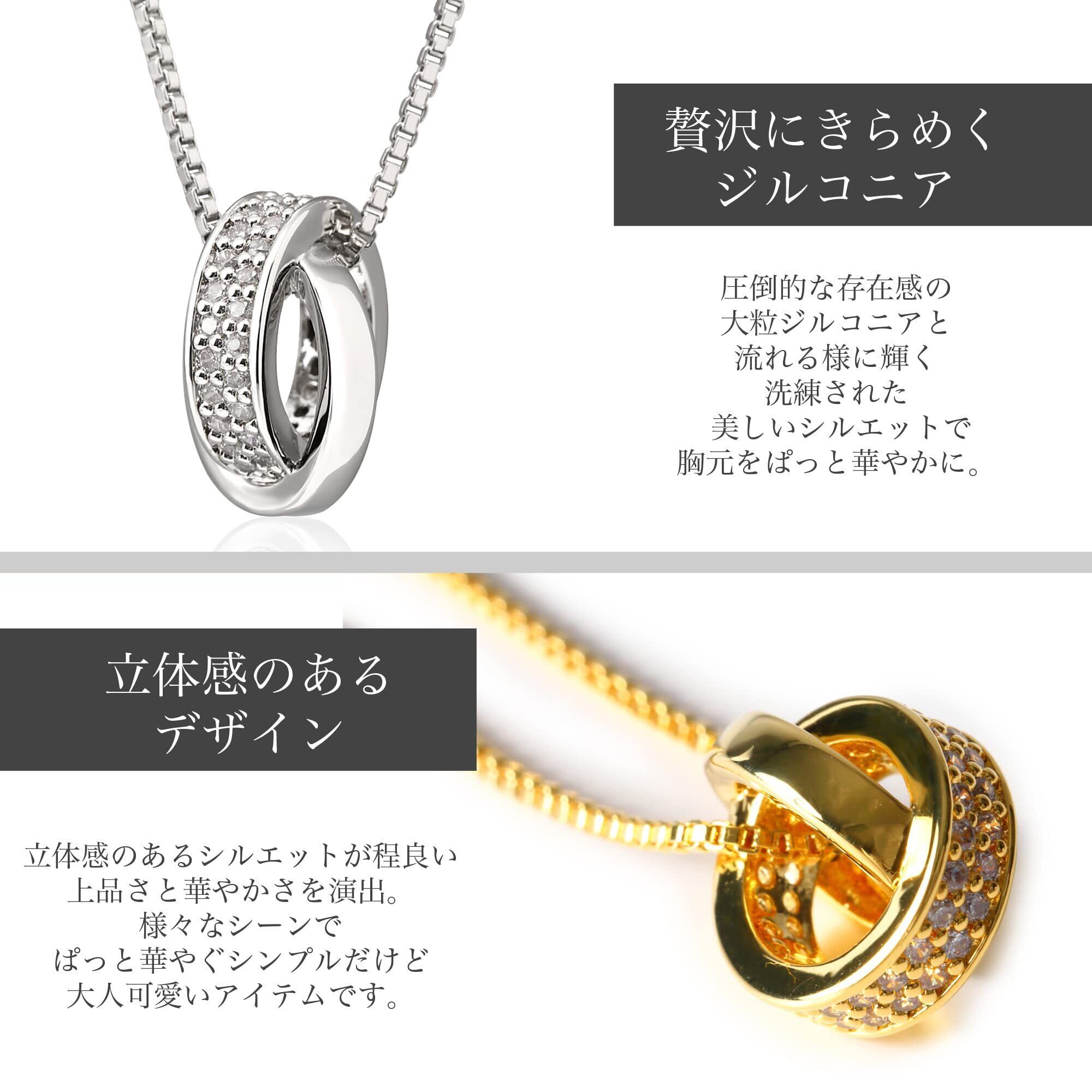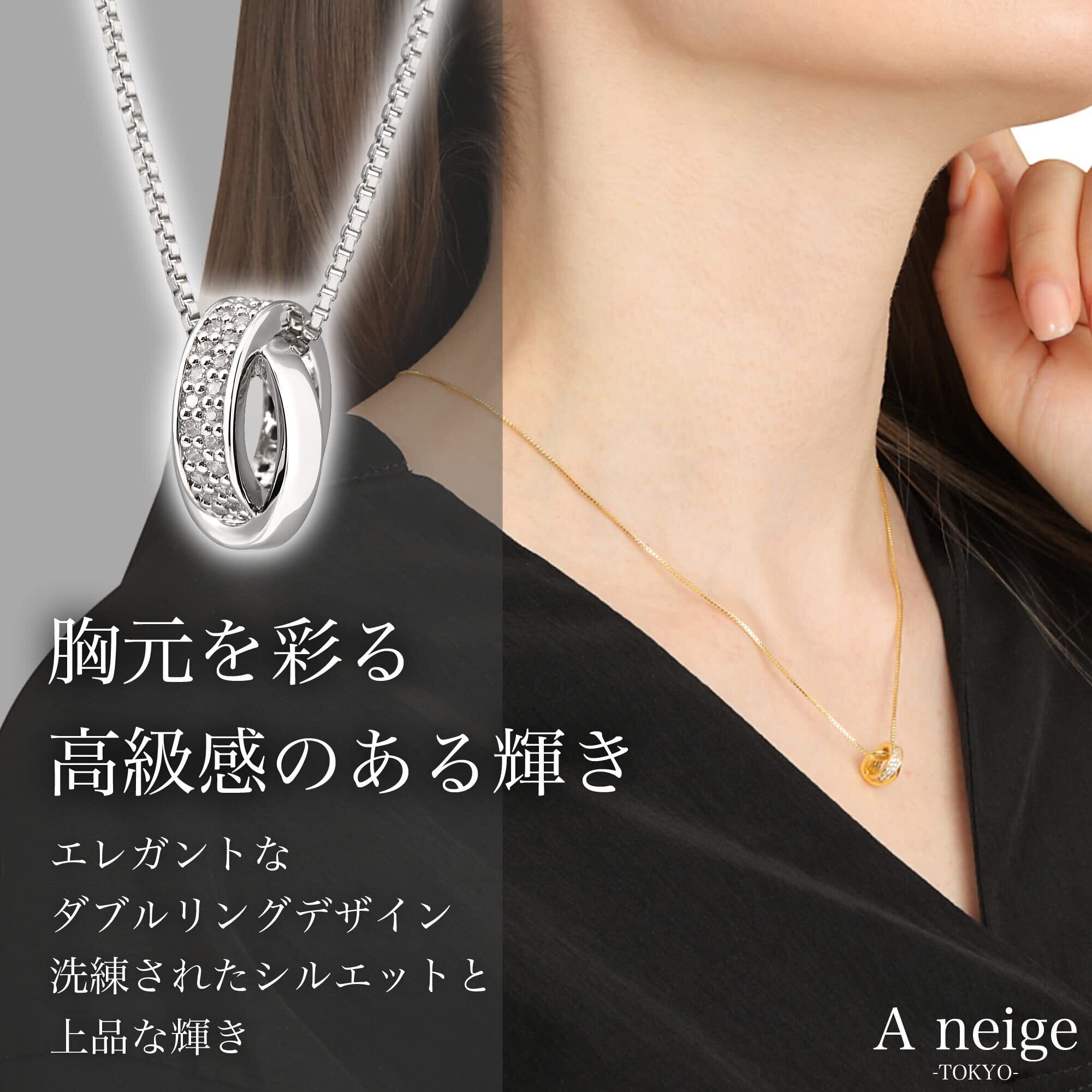 Aneige ネックレス レディース メンズ ダブルリング シルバー925 スワロフスキー ジルコニア 金属アレルギー対応 シンプル ペンダント ベネチアンチェーン 50cm 長さ調整可能 ギフト プレゼント