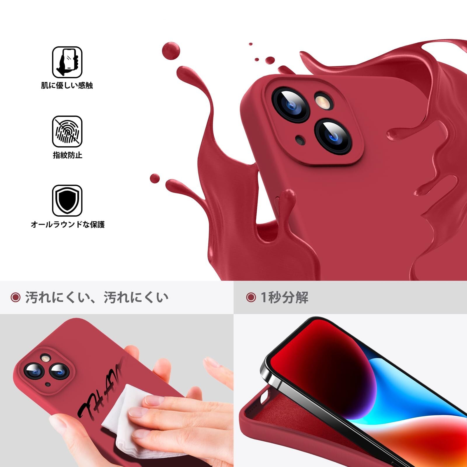 Supdeal iPhone 14 ケース 対応液体シリコン [耐衝撃] [柔軟TPU液体シリコン] [ソフトタッチ] [レンズの全面保護] [指紋防止] [落下防止] [滑り防止] 軽量 4層保護 アイフォン 14 スマホカバー 6.1インチ(レッド)
