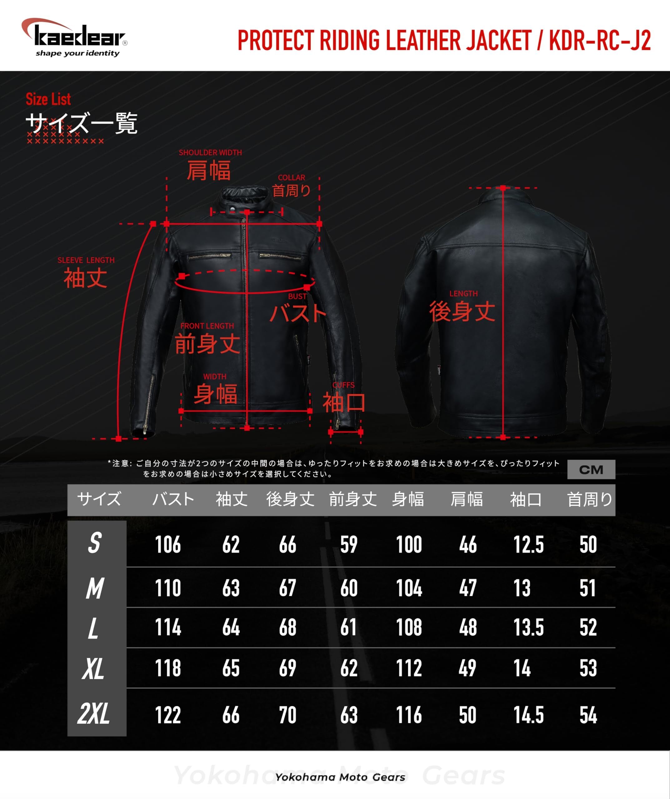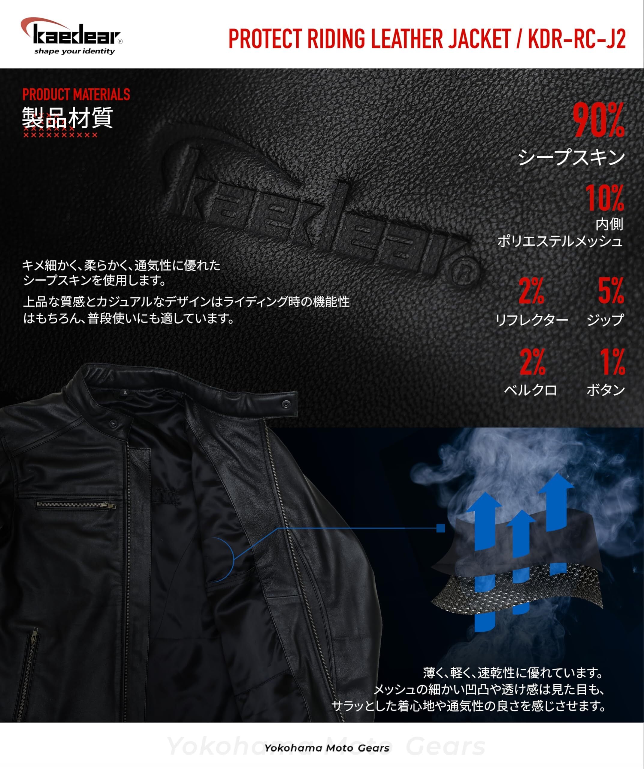 [Kaedear] カエディア バイク レザー ライダースジャケット 春秋 防風 羊革 KDR-RC-J2/J3 ブラック