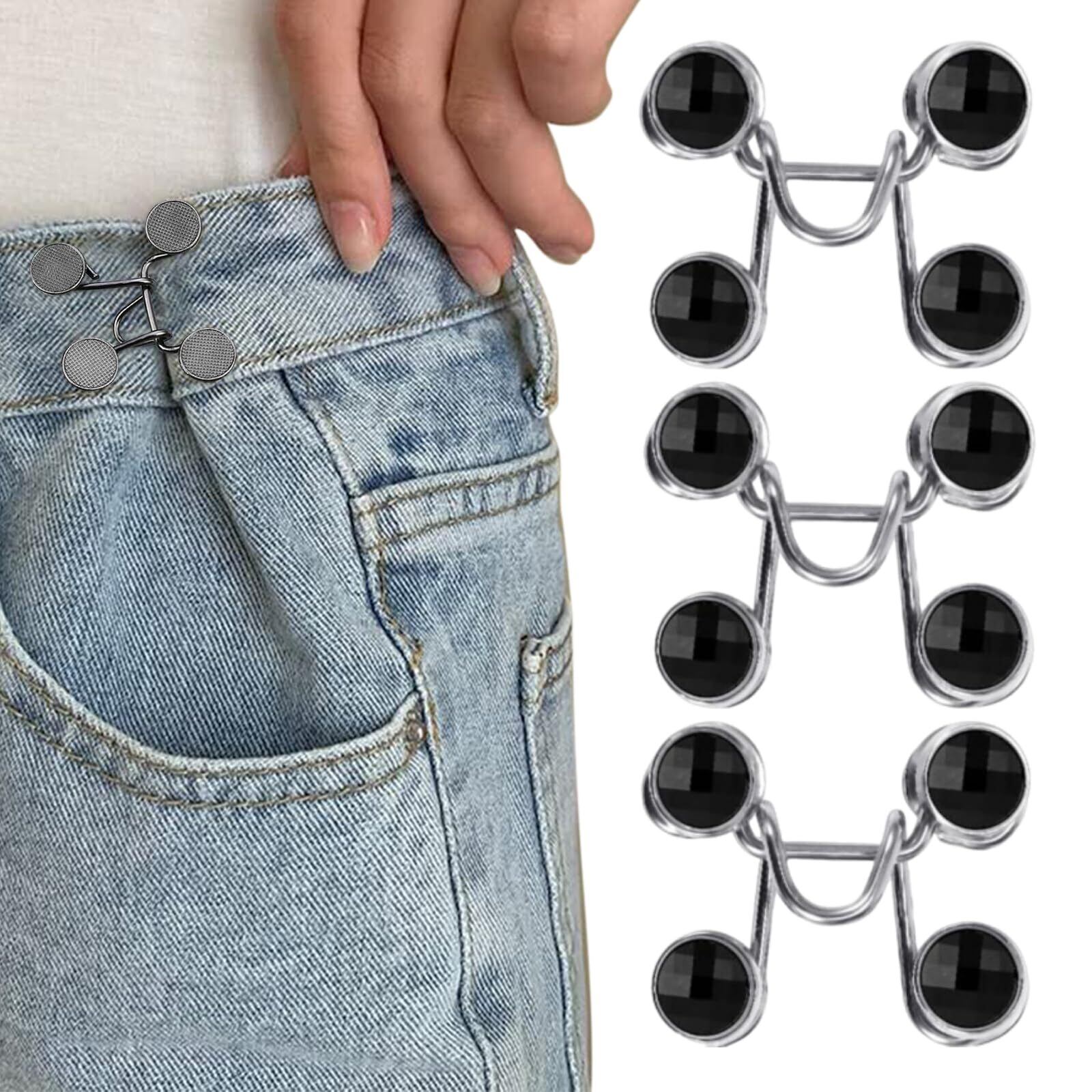 [YFFSFDC] 【ウエスト調整ボタン27mm3セット】ジーンズ 調整 リベット付き 縫い目ない ウエストバックル ゆるゆるのジーンズ/ズボン/スカート/Tシャツ/パーカーなどを調節する取り外し可能ボタン 調節可能 交換用 (黒パール)