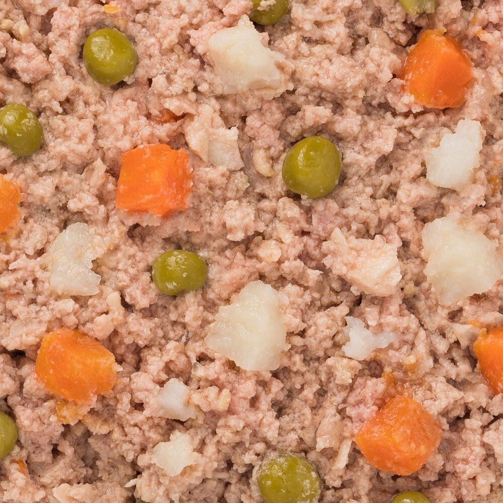 鶏肉、野菜類(じゃがいも、人参、グリンピース)、食塩、増粘安定剤(増粘多糖類)