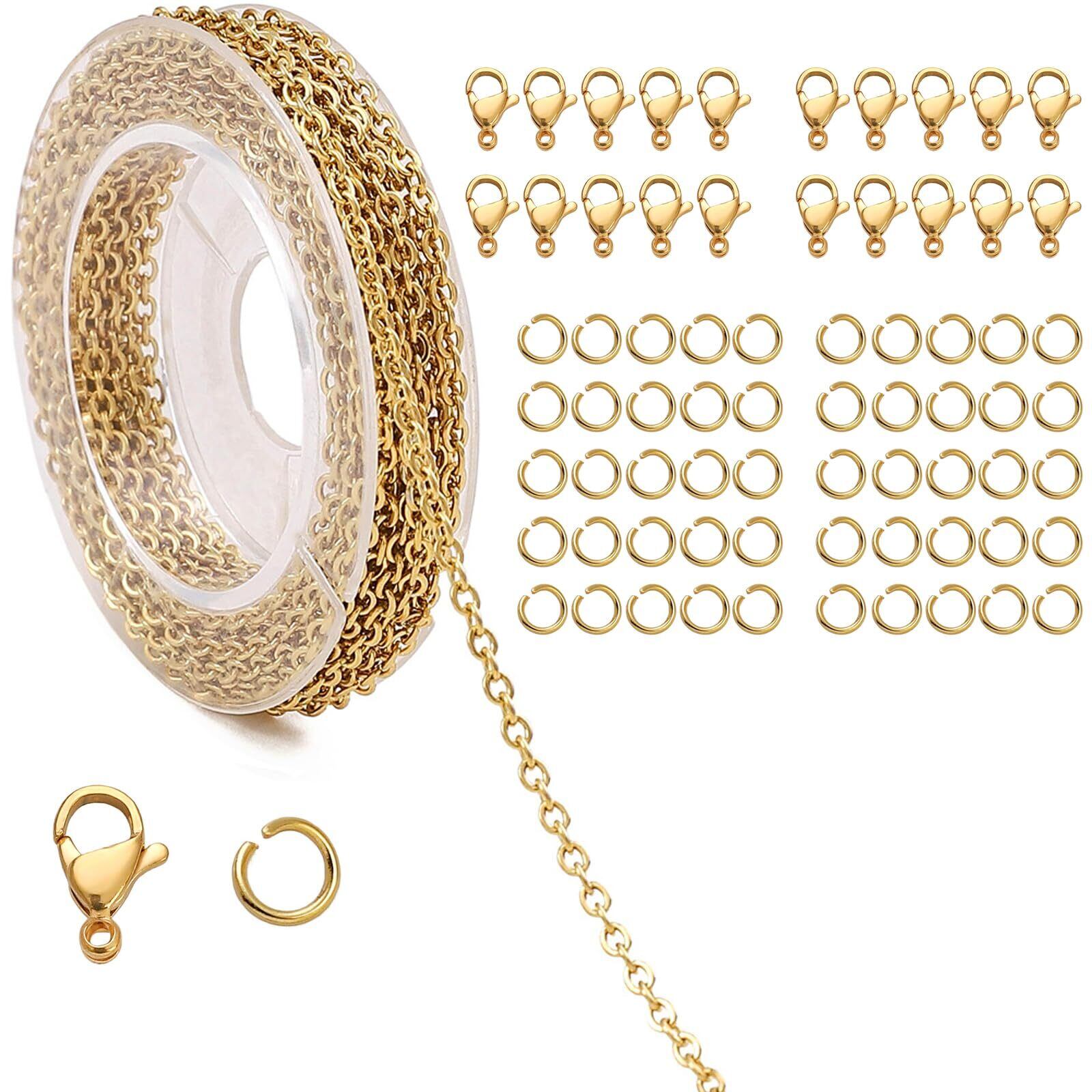 【仕様】:アクセサリーチェーン1巻、長さ約5 m、幅約1.5 mm、ロブスターボタン20個、リング50個。