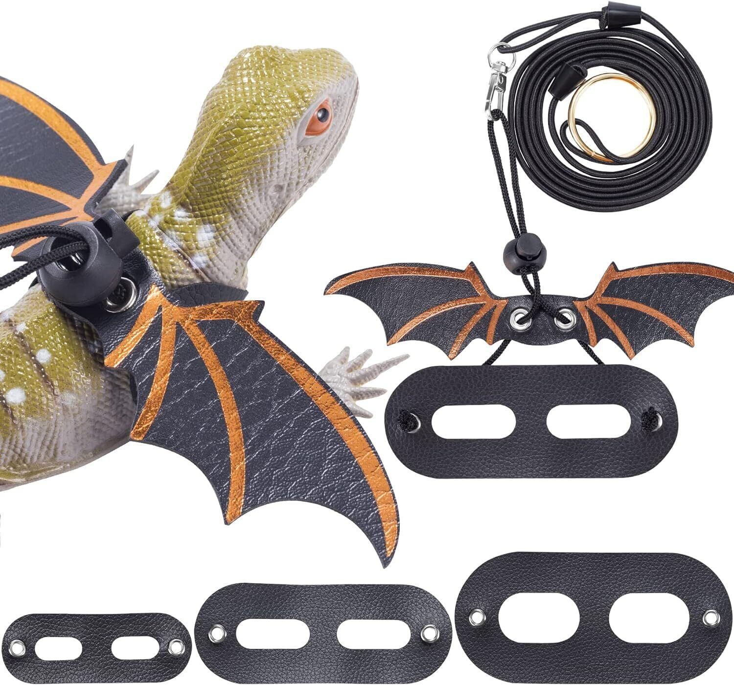 FuoooooGui(ふうぐい)トカゲ用ハーネス爬虫類リード3サイズコウモリの翼小動物ペットハーネスリード蜥蜴牽引ロープお出かけ散歩用ハロウィンブラックリーシュキャリア付きトカゲのリード小型ペット用の調節可能な小動物のリードハムスターヤモリフェレットイグアナ小型ペット用爬虫類アクセサリー