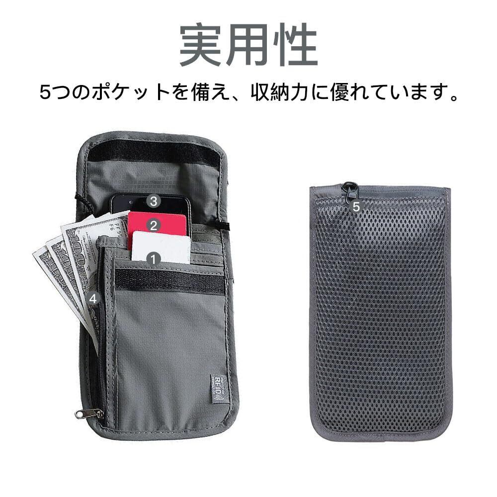 LOYELEY パスポートケース RFID スキミング防止 磁気防止 セキュリティポーチ パスポートバッグ ネックポーチ IDカードケース 防水 軽量 ペン 鍵 カード 小銭 航空券 紙幣 スマホ 収納可 出張 家庭旅行 海外旅行 男女兼用 (グレー)