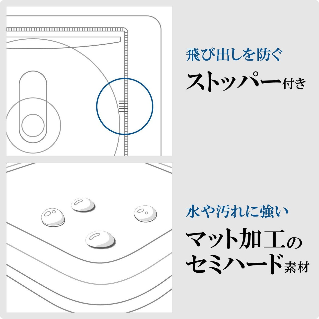 ■汚れや水に強く、傷がつきにくいマット加工のセミハード素材を採用しています。