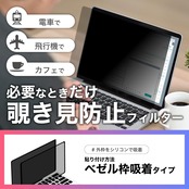 【 着脱式 プライバシー保護 のぞき見防止フィルム 】左右からの覗き見を30°ずつ(合計60°)防止。カフェ・新幹線・飛行機等、公共の場でのパソコン使用に便利です。また、糊を使用していないため、必要のない時は取り外しも可能です。