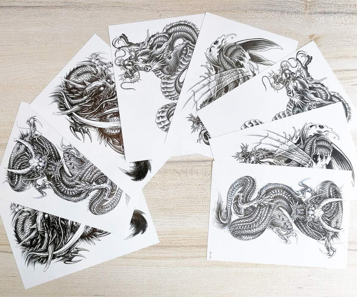 Yesallwas タトゥーシール 龍 ドラゴン 竜 飛竜 DRAGON 8枚セット タトゥーステッカー ボディーシール 刺青シール 防水 TATOO (A)