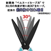 根元から刃先まで切断に最適な刃の開き角度(約30°)を常に保つゆるやかなカーブを持った