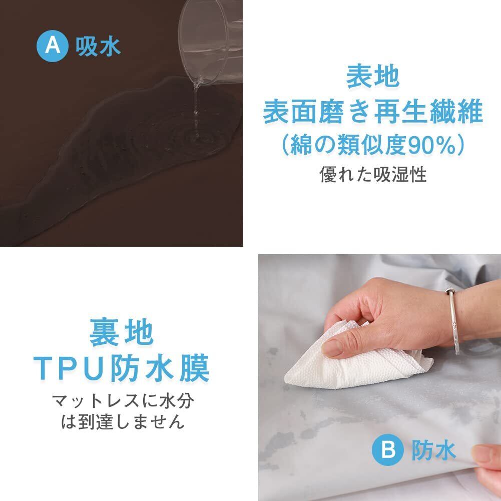【素材・材質】:表地-表面磨き再生繊維(綿の類似度95%) 裏地-ポリウレタン(TPU防水素材)吸水速乾タイプなので洗濯機で丸洗い後、比較的短時間で乾きます。防ダニ・抗菌作用もあるので赤ちゃんや介護の必要な高齢者の方にも安心してお使い頂けます。