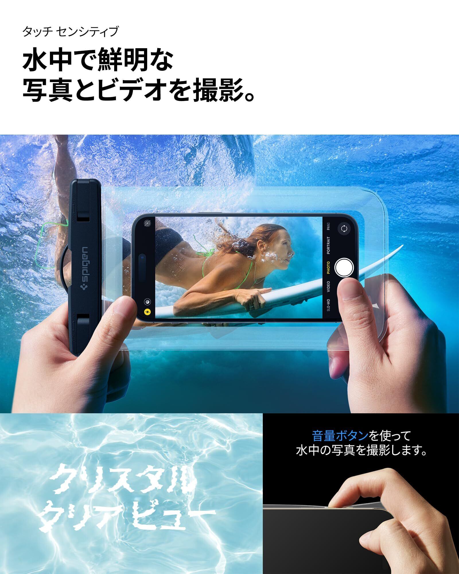 【クリアな撮影】ケースを入れたままでも、画面のタッチ操作やカメラでの撮影がそのまま行えます。透明度の高いPVC素材を採用しており、水中でもクリアな写真や動画を撮影できます。