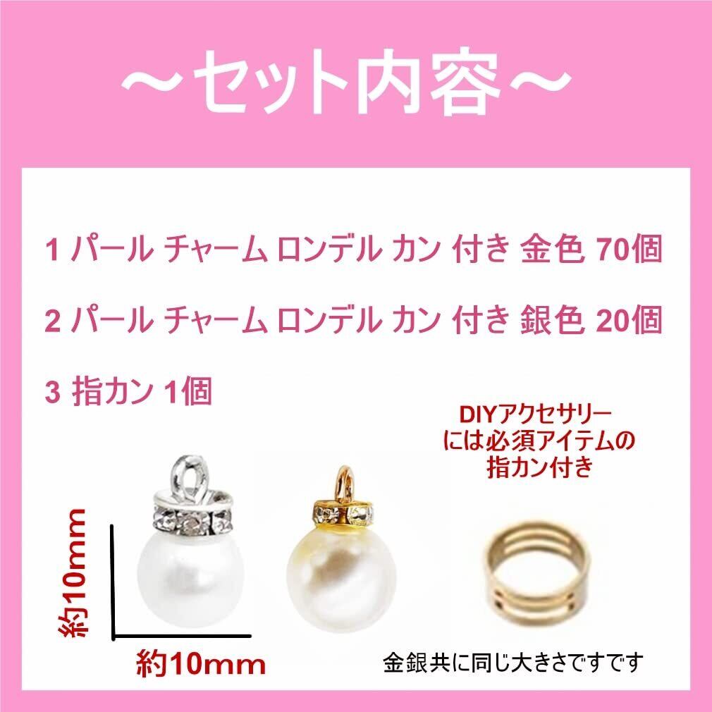 パール チャーム ロンデル カン 付き 金色 70個 銀色 20個 合計90個 2色共 人気のサイズ 10mmをセットにしました。