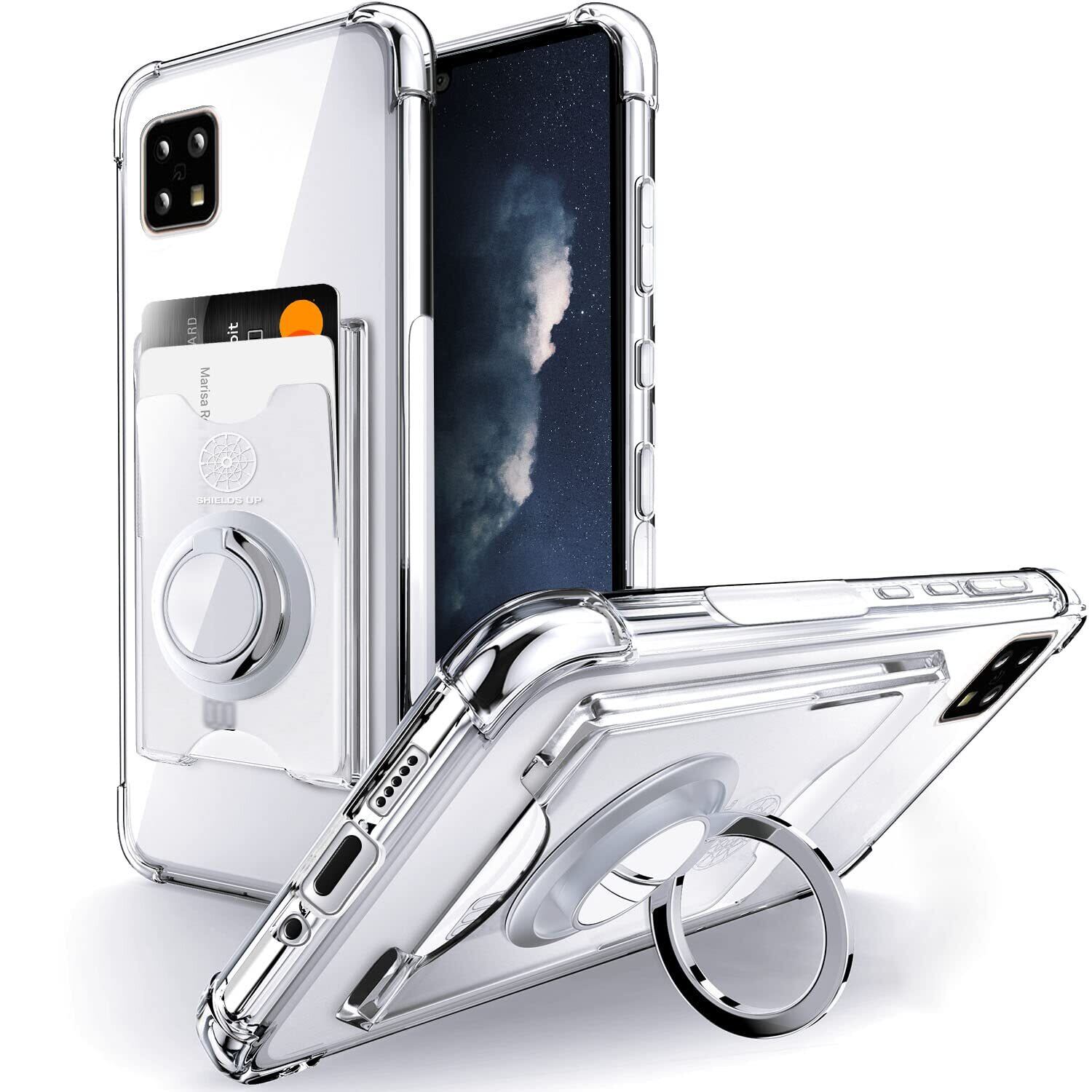 SHIELDS UP AQUOS sense 5G ケース sense4 lite/sense4/ sense4 basic ケース [SH-53A] [SHG03] [SH-41A] [A003SH] 対応 リング付き 背面収納 耐衝撃 耐久 すり傷防止 滑り止め カード収納 スタンド付き 透明 TPU スマホケース - クリア