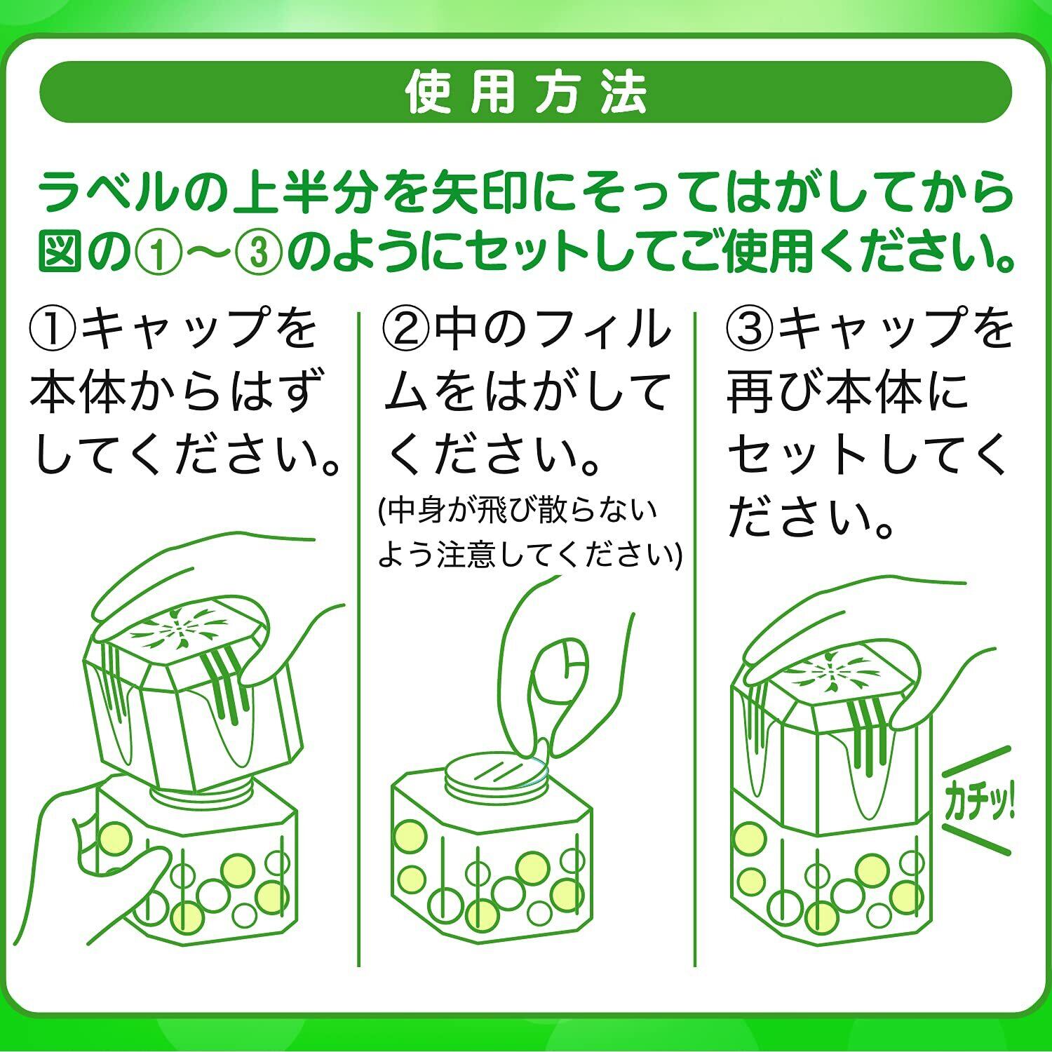 ●(2)中のフィルムをはがしてください。(中身が飛び散らないよう注意してください。)●(3)キャップを再び本体にセットしてください。※持ち運ぶ際は、容器の本体部分をしっかり持ってください。キャップ部分を持つと、本体からはずれ中身がこぼれることがあります。