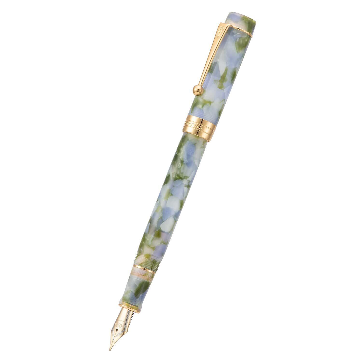Lanxivi (ジンハオ) Jinhao クラシック万年筆 ブルーグリーンセルロイド 極細ペン先 コンバーターとペンケースセット