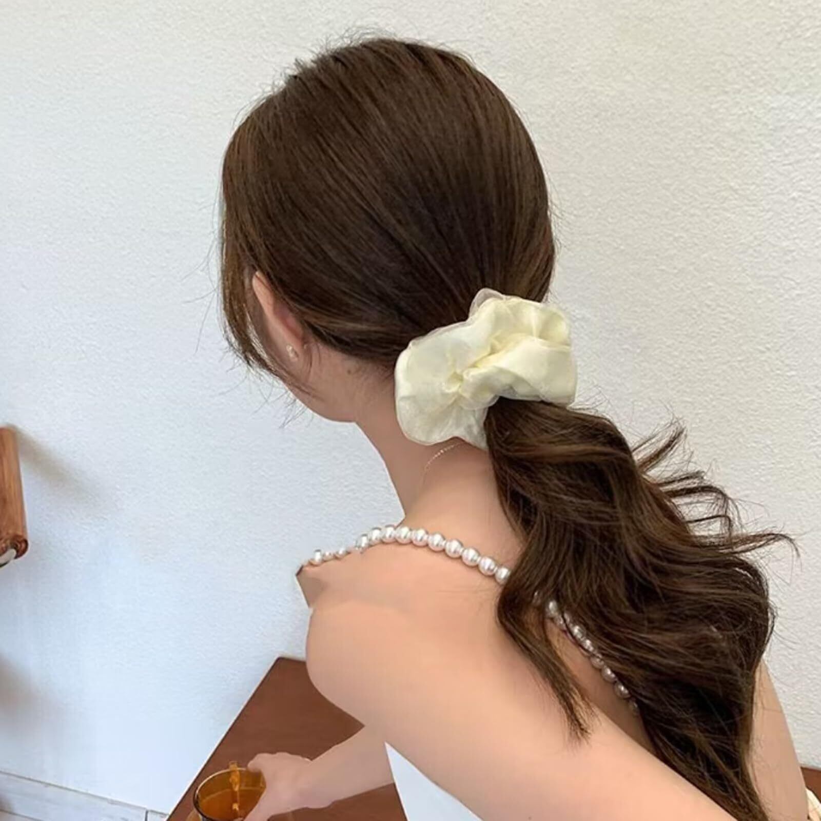 HAPVITAL シュシュ シフォン シュシュ おしゃれ 大人 ヘアロープ ヘアゴム 大人 髪飾り 大きめ 無地 特大 エレガント サテン シンプル ヘアアクセサリー ヘアアクセサリー (シンプルな3点セット)