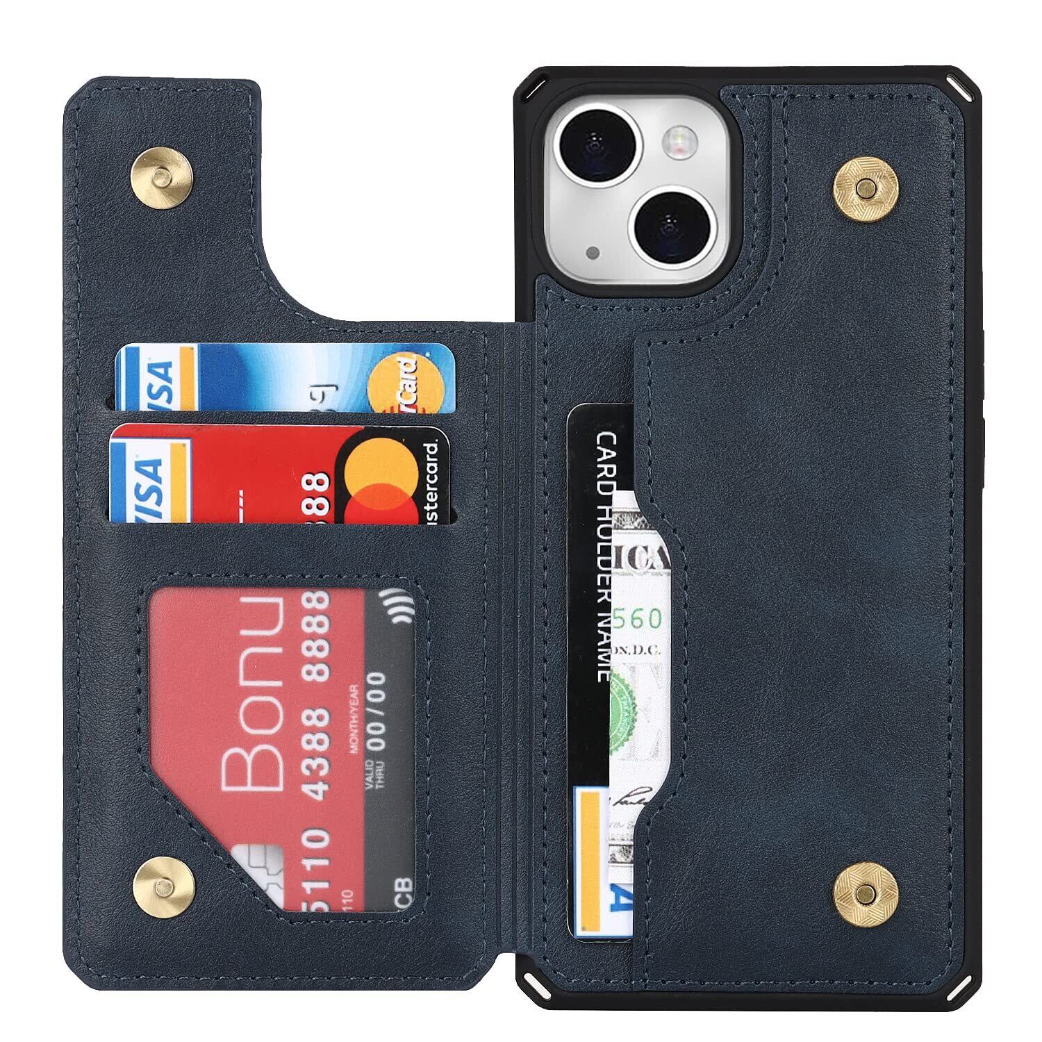 Pelanty for iPhone 13 ケース アイフォン13 ケース縄掛け 6.1インチ 背面 手帳型 PUレザー IC カード収納 軽量 スタンド機能 ボタン磁気 多機能 iPhone 13 スマホケース 耐衝撃 滑り防止 全面保護 ストラップ 携帯カバー -ブルー