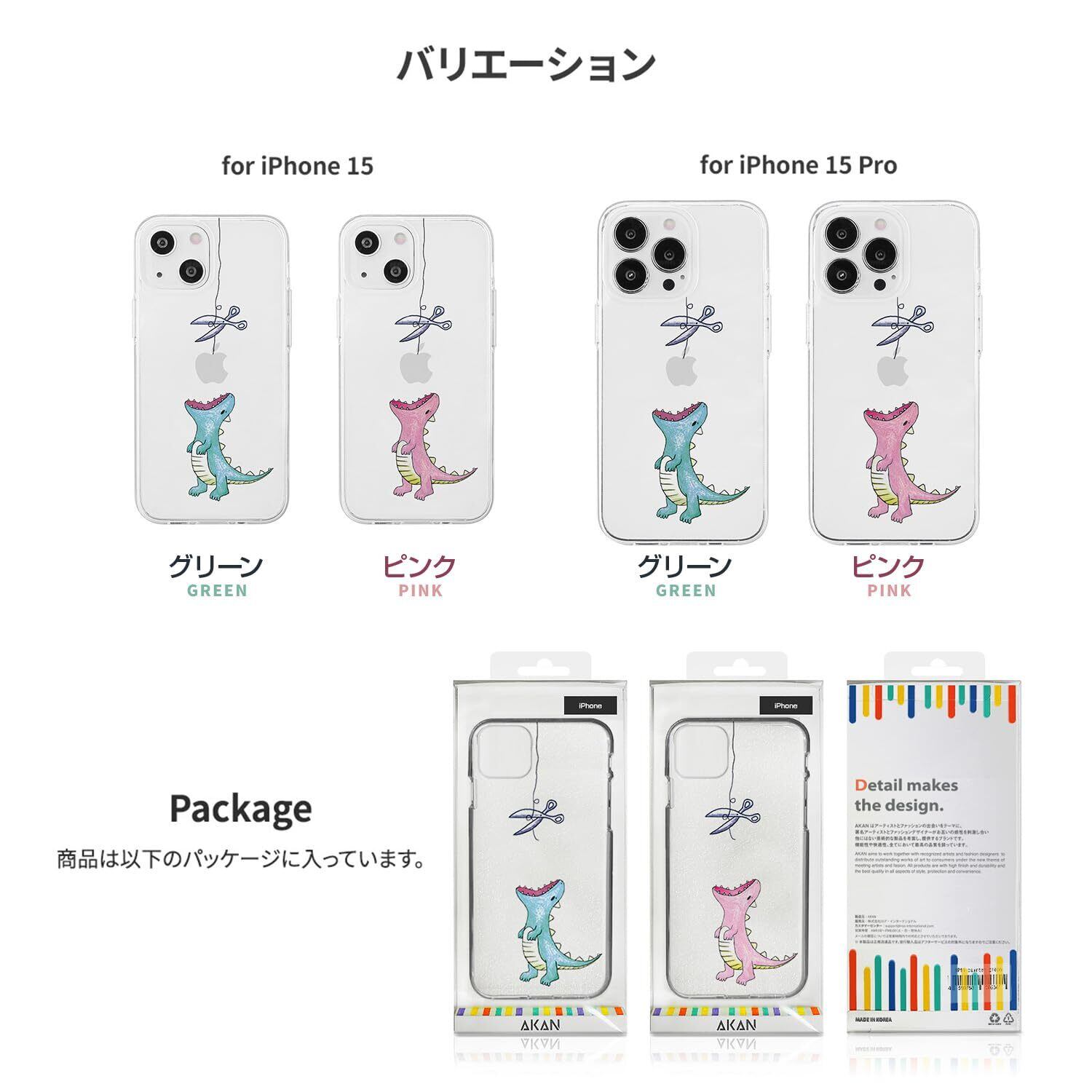 AKAN iPhone 15 ケース ソフトクリアケース [ 透明 密着痕防止 TPU 変色しにくいUVプリント 防塵 Qi充電 ワイヤレス充電 ] かわいい 人気 キャラクター アップル アイフォンケース AK25628i15 はらぺこザウルス ピンク 【国内正規品】