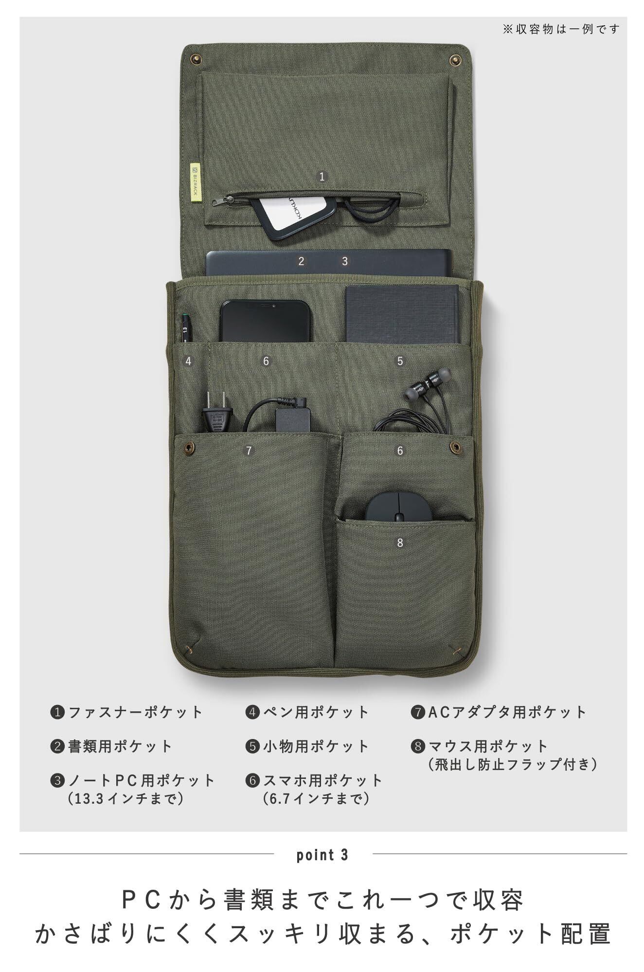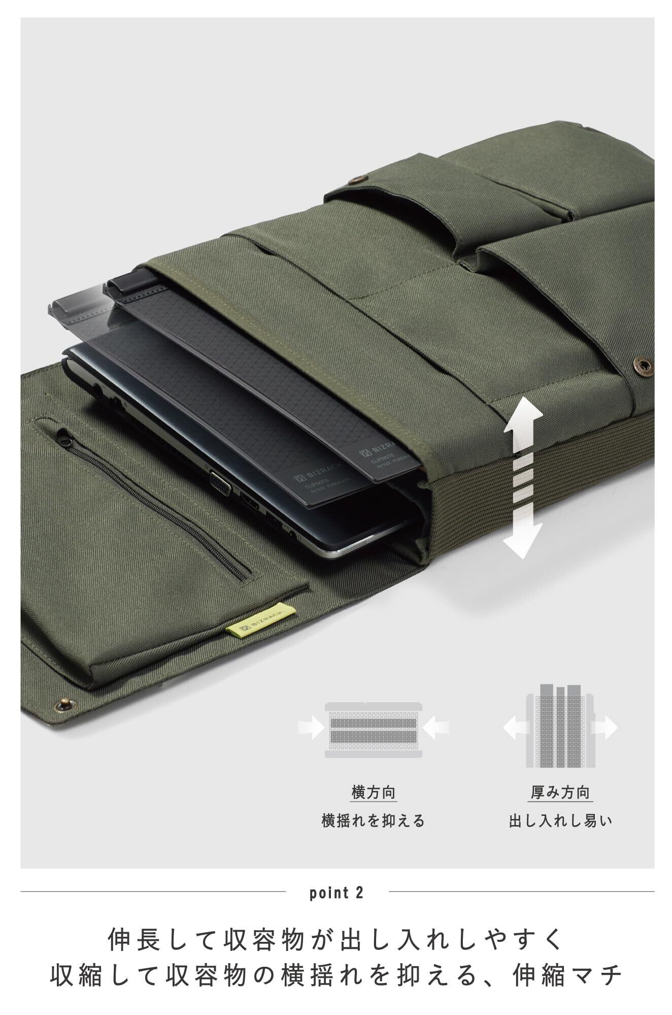 POINT3:PCから書類までこれ一つで収容。かさばりにくくスッキリ収まる、ポケット配置。