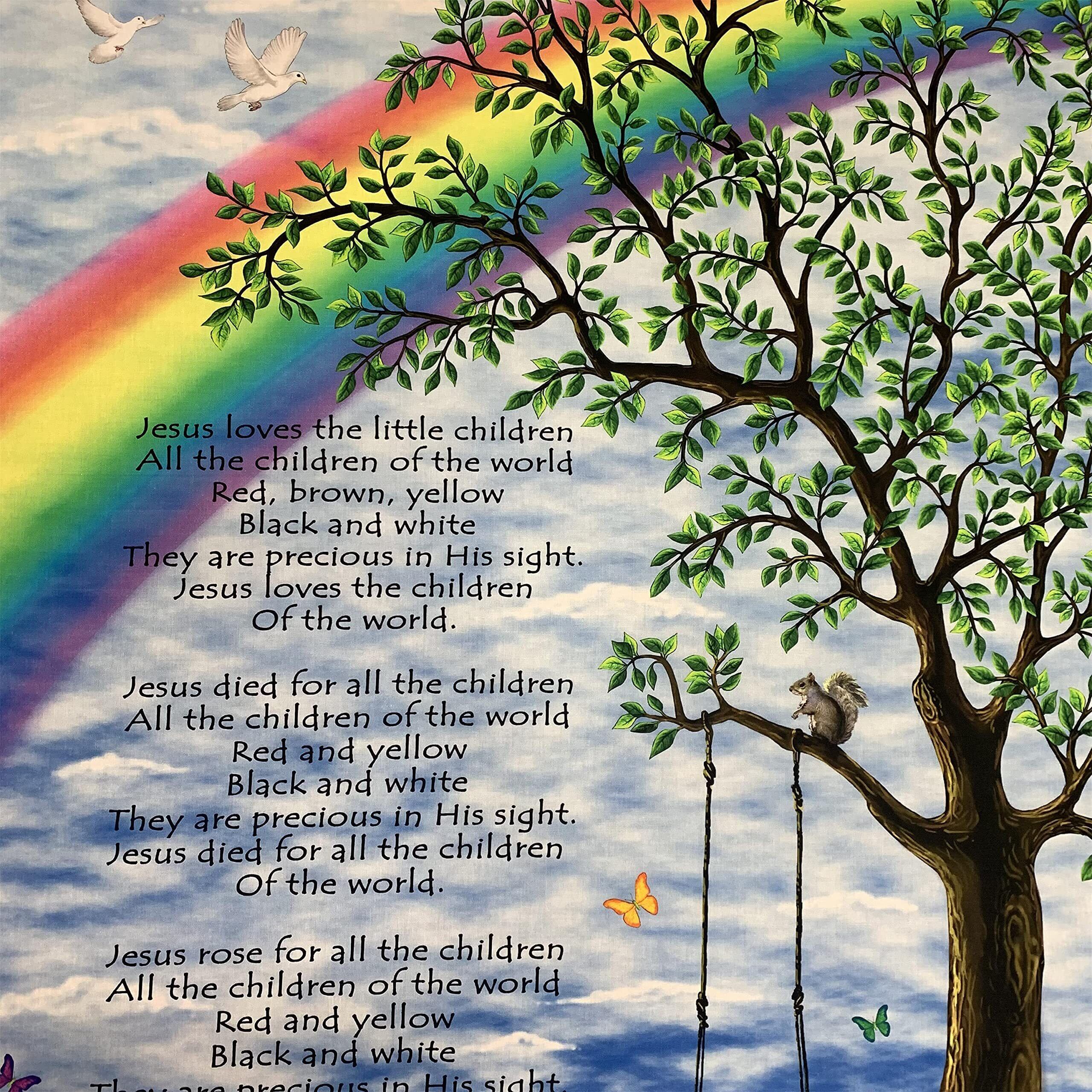 アメリカ生地パッチワーク 手作り布 タペストリー ファブリックパネル カーテン生地 キリスト詩 絵 虹 木 綿素材