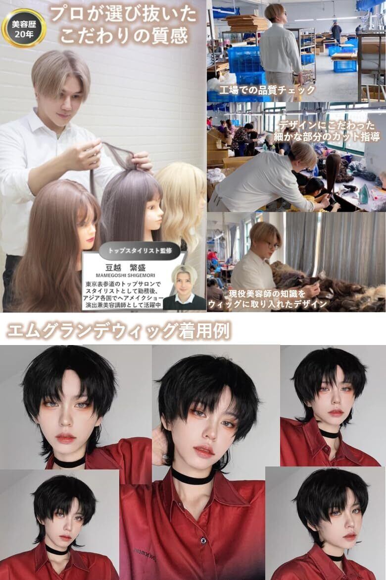 エムグランデ プレミアム ウィッグ 【現役トップスタイリスト監修】 6点セット かっこいい クール メンズ かつら wig ショート イケメン hair 自然 小顔効果 フルウィッグ (ワンホンウルフDY79A)