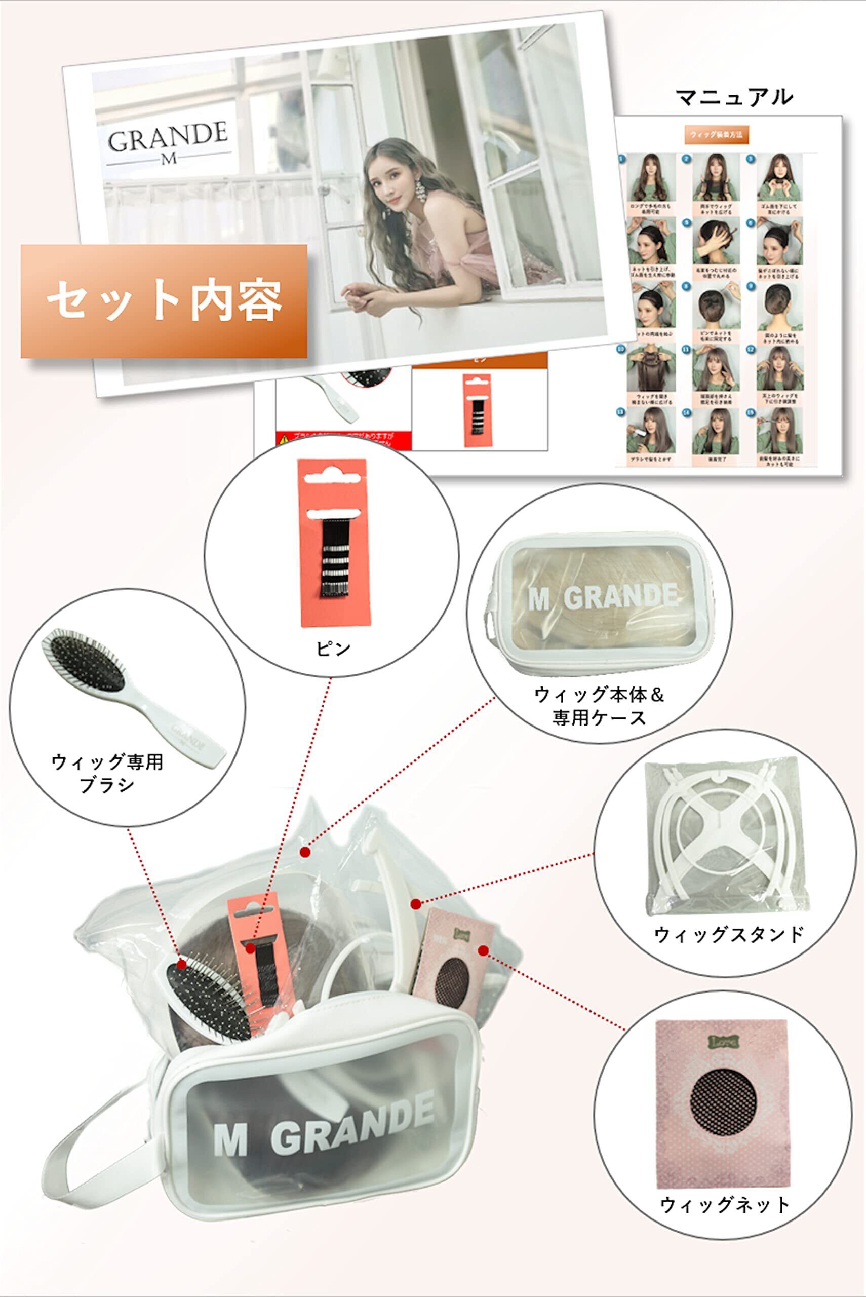 【セット内容】ウィッグ本体 ウィッグ専用ブラシ ウィッグスタンド ヘアピン ウィッグネット 取り扱い説明書 専用ケース