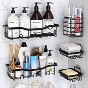 PKBD 浴室用シャワーラック【2025グレードアップで大容量します】シャンプーラック 強力粘着固定 お風呂 ラック洗面所 収納ラック 5着のセットです(黒です)