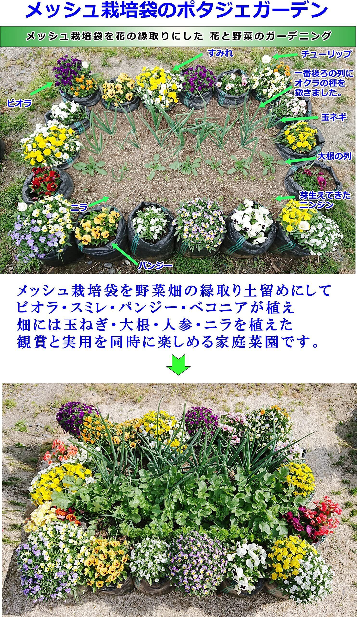 メッシュ栽培袋UV黒PE 10枚 花・野菜のコンテナ 根の環境を助長した通気性・通水性 高さ自在調整