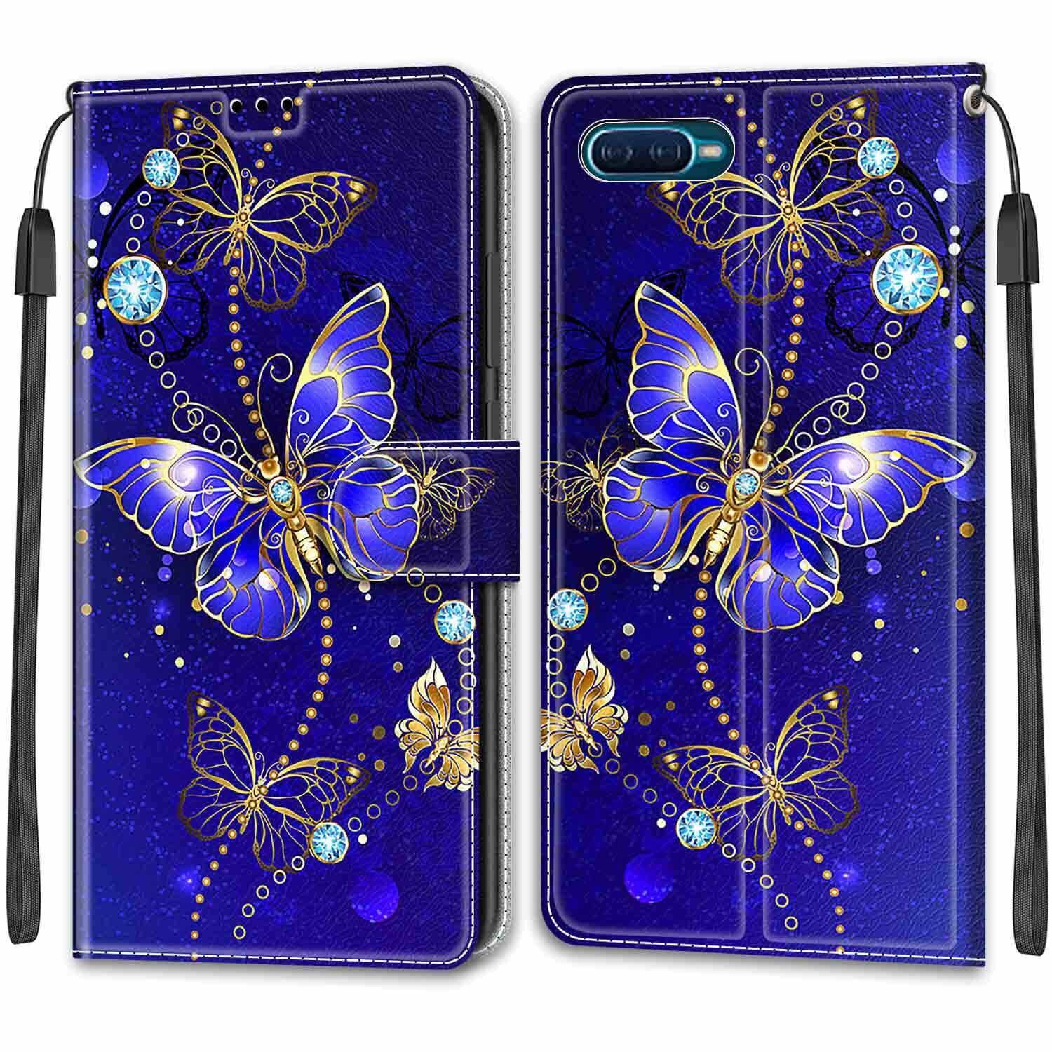 KENHONER Oppo Reno A ケース ネノ A ケース oppo ネノ A カバー オッポ Reno A 対応 スマホケース 手帳型 カバー 適用 case 内蔵マグネット 携帯カバー カード入れ スタンド機能 (青い蝶)