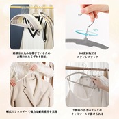 【省スペー】厚みはわずかに0.5cm、スリムタイプのハンガーで、クローゼットの中でかさばらなく、スペースを有効活用して、たくさんの衣類をきれいに収納することが可能に。また、凹み部分のデザインはキャミソールなどの紐状のお洋服も掛けやすくなっており、安心に使えるハンガーです。