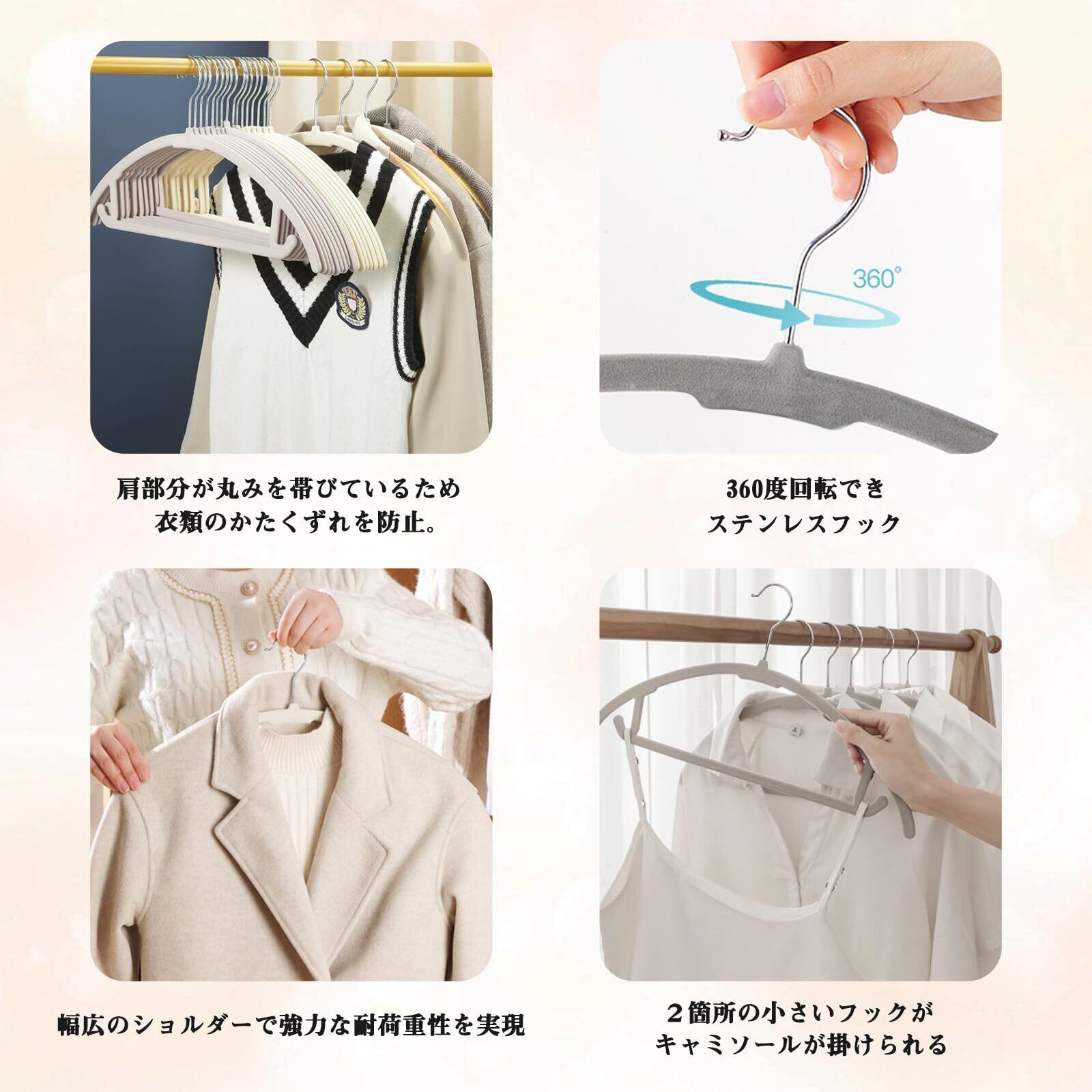 AYO ハンガーすべらない 10本組 滑らないハンガー かたくずれ防止 360度回転フック 軽量 曲げれる 頑丈 収納 ベルベット製 アイボリー