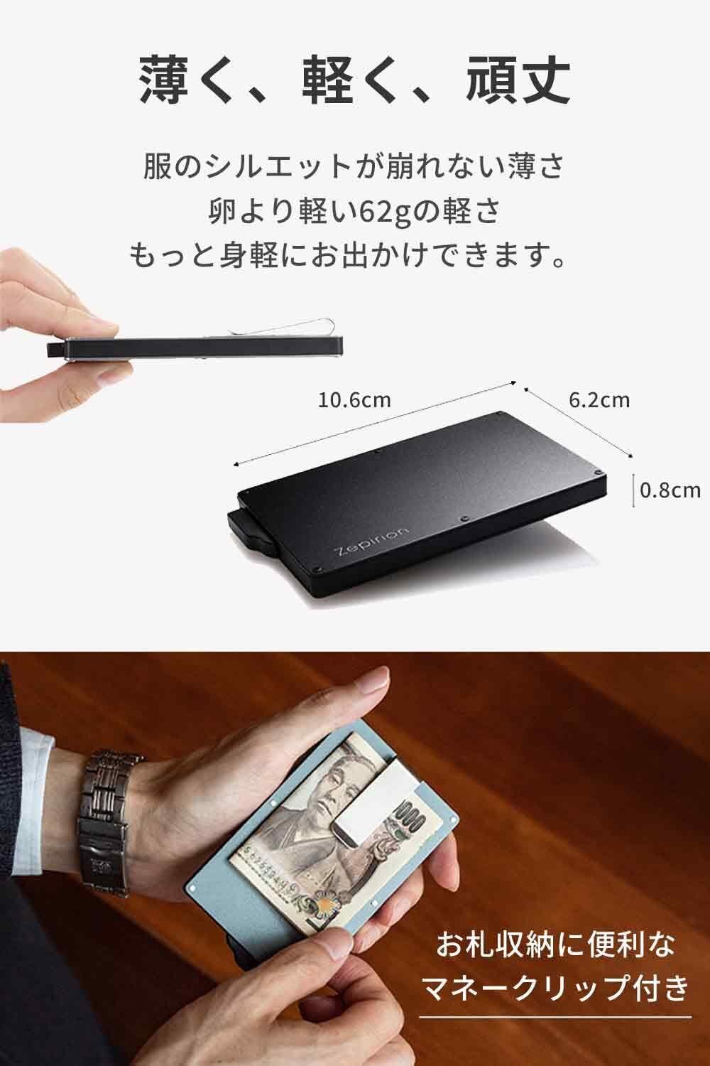 [zepirion] クレジットカードケース スキミング防止 磁気防止 スライド式 スリム マネークリップ付き アルミニウム ブラック