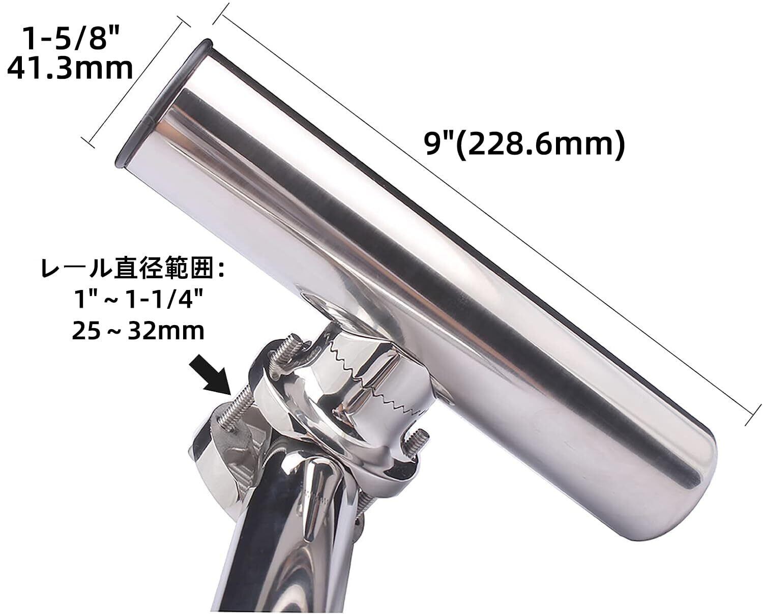 Amarine-made ステンレス製 船竿置き クランプオンロッドホルダー 4個セット 角度調節可能 六角レンチ付き