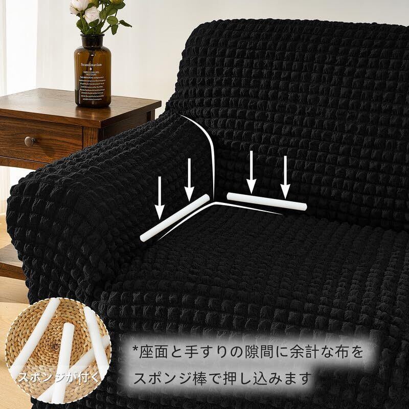 Topfinel ソファーカバー 3人掛け 肘付き 防汚 洗える 簡単着脱 滑り止め 伸縮性良く 通気性 耐久性 犬猫対策 四季適用 かわいい 北欧 ブラック