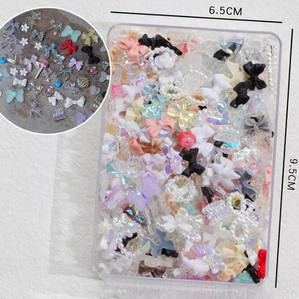 【バラエティ豊富なデザイン】蝶々、蝶結び 、キャンディー、花、ベア型など、さまざまなデザインのネイルパーツがあり、可愛らしくおしゃれです。