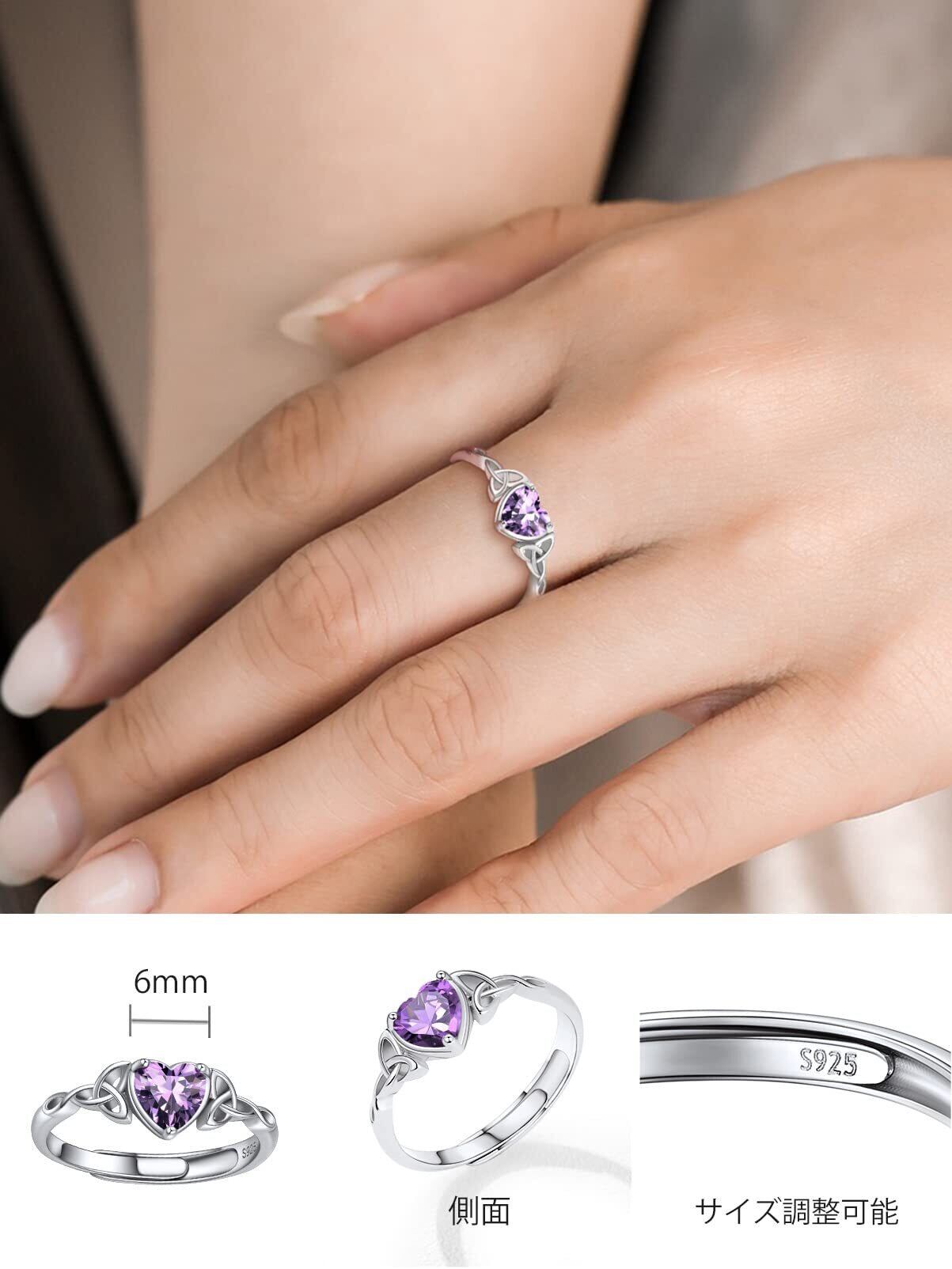[ChicSilver] 指輪 レディース ハート リング シルバー925 ジルコニア フリーサイズ 誕生石 女性 クリスマス アクセサリー