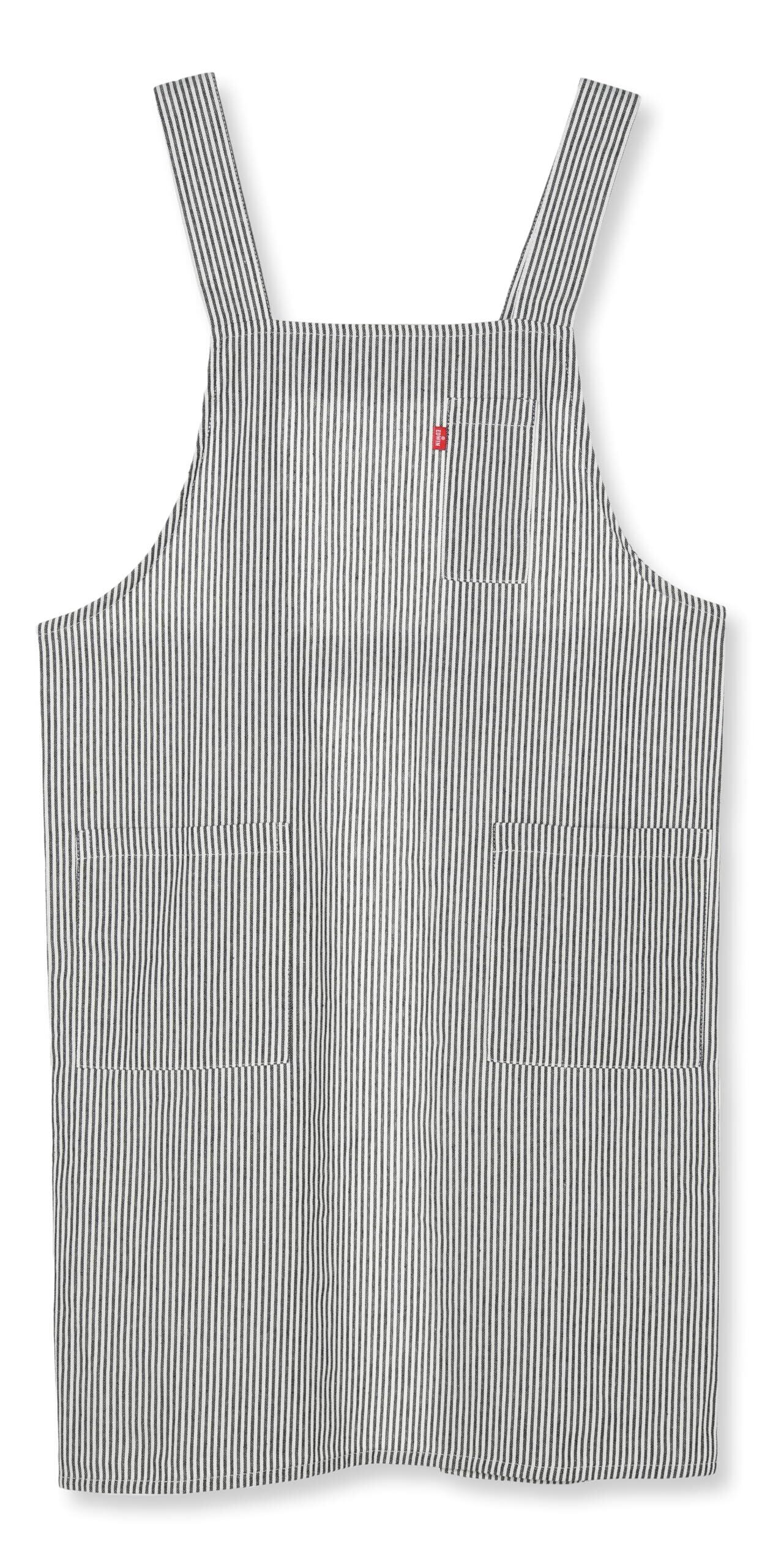 [エドウィン] エプロン 二段階調節可能な後ろ腰ボタン ヒッコリー H型 両サイドポケットペン差し付 ブラック M