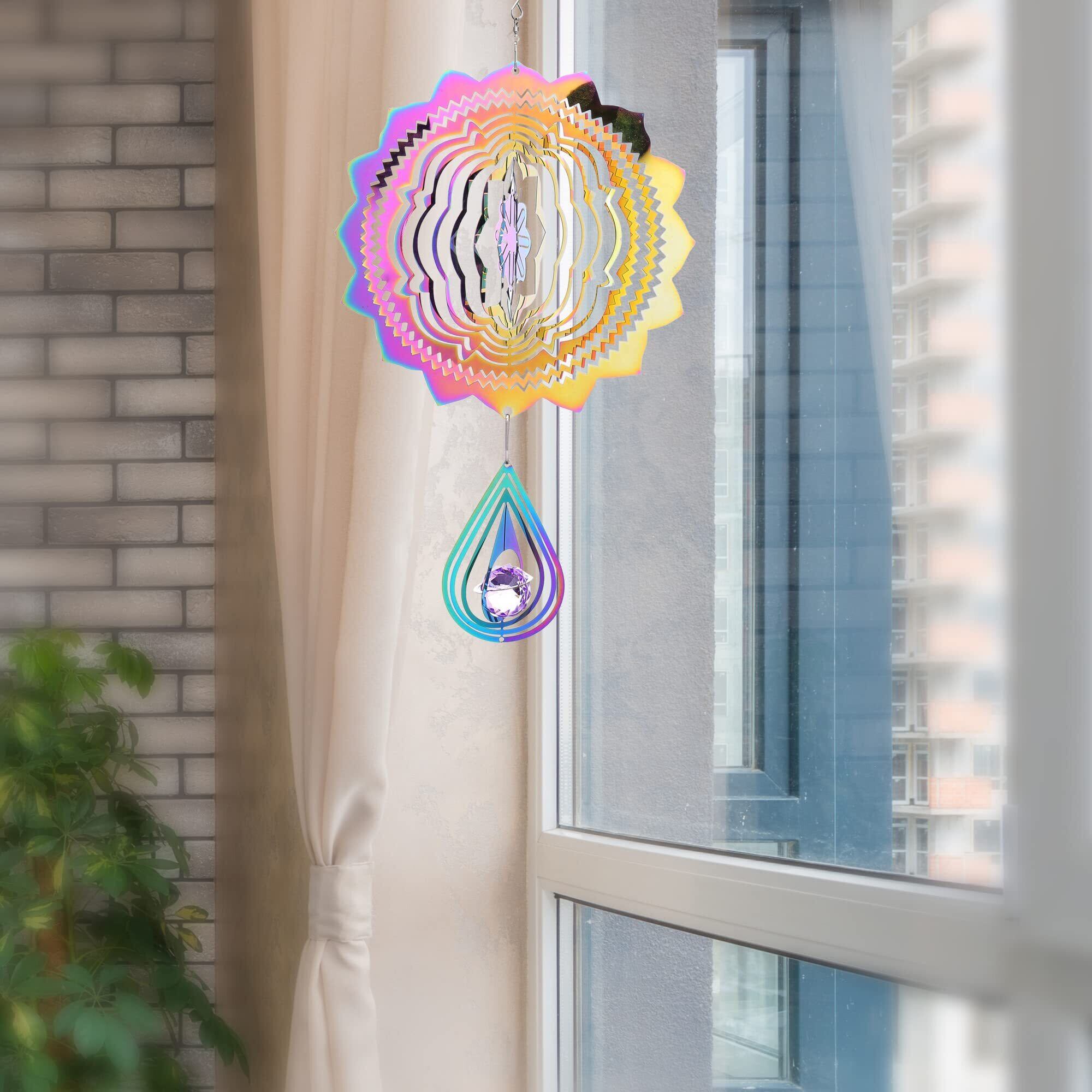 Lpraer ハンギングウィンドスピナー 6インチ ステンレススチール 3D カラフル アート キネティック マンダラ ウィンドスピナー クリスタルペンダント 屋外庭 庭 庭 庭 (花)
